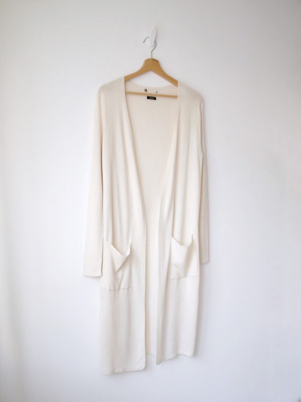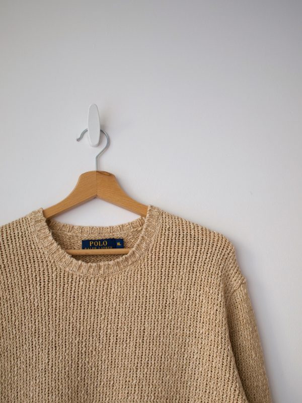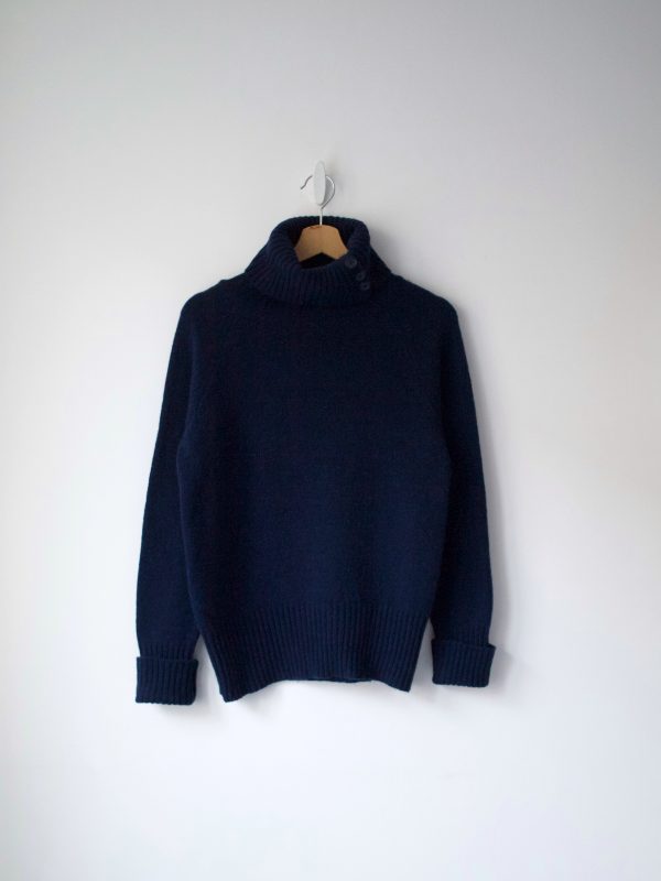 Unikatowy sweter vintage, wykonany z kaszmiry o grubym splocie. Sweter został wyprodukowany w Szkocji przez John Laing of Hawick – renomowaną markę specjalizującą się w wysokiej jakości dzianinach z kaszmiru i wełny.