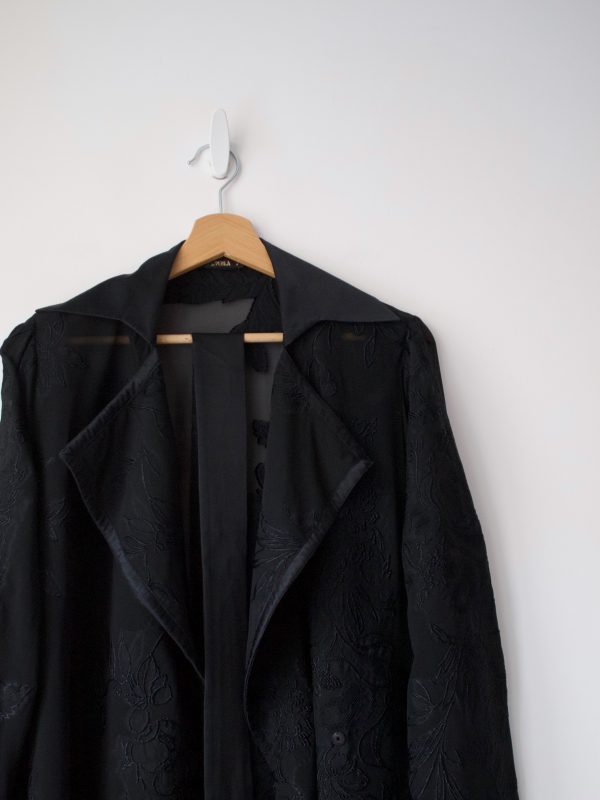 750,00 zł600,00 złUnikatowy peniuar vintage, wykonany z dbałością o każdy szczegół. Luksusowa włoska marka La Perla, specjalizująca się w produkcji bielizny oraz ubrań najwyższej jakości, doceniana przez wiele hollywoodzkich gwiazd. Obecnie marka przechodzi reformy, a jej produkty są trudniej dostępne, w związku z czym ceny bielizny tej marki na rynku vintage sięgają nawet ponad tysiąca USD. Peniuar jest wykonany z jedwabnej krepy, a wszystkie krawędzie, kołnierz oraz pasek – z jedwabnej satyny. Może być noszony również jako letnie okrycie wierzchnie. Polecam dla osoby wysokiej.