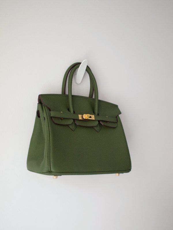 280,00 złMała skórzana torebka w zielonym kolorze, wykończona złotymi okuciami. Klasyczna, usztywniona forma z krótkimi uchwytami i regulowanym paskiem umożliwia noszenie na kilka sposobów. W środku znajduje się jedna komora oraz dwie kieszonki. Nowa bez metki.