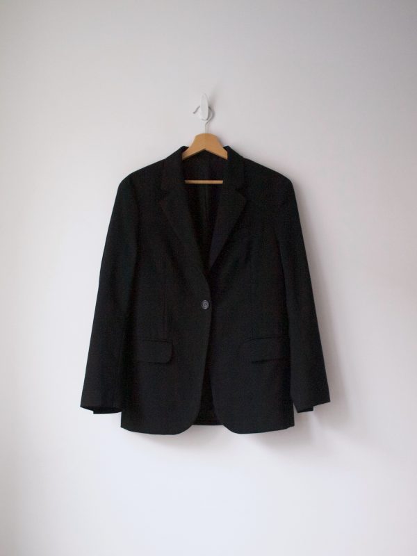 150,00 złMarynarka marki Arket. W 100% wykonana z wełny, luźny fason. Ma małe uszkodzenie materiału, pokazane na zdjęciu.