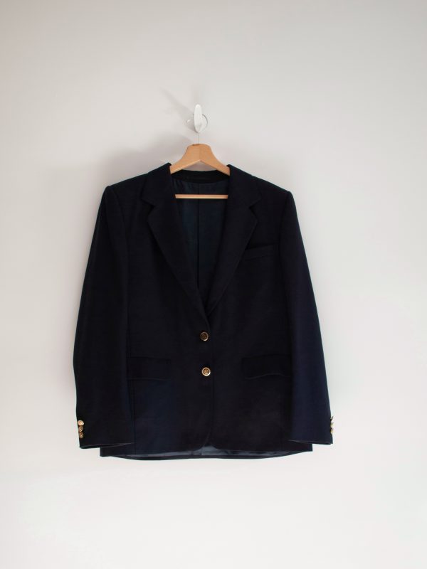 270,00 złMarynarka luksusowej brytyjskiej marki Aquascutum, wykonana w 100% z wełny w granatowym kolorze, zapinana na eleganckie guziki, z sygnowaną podszewką.