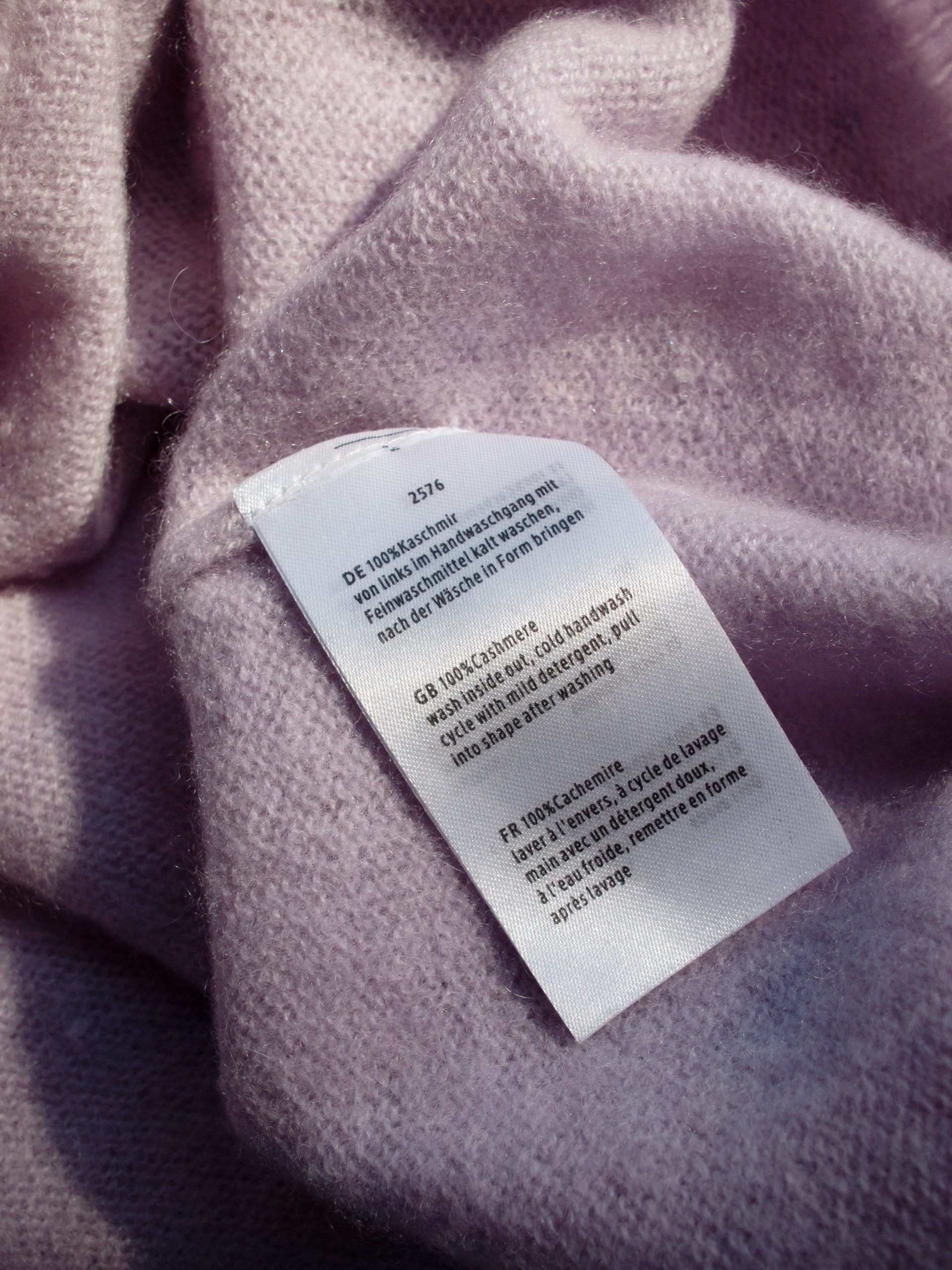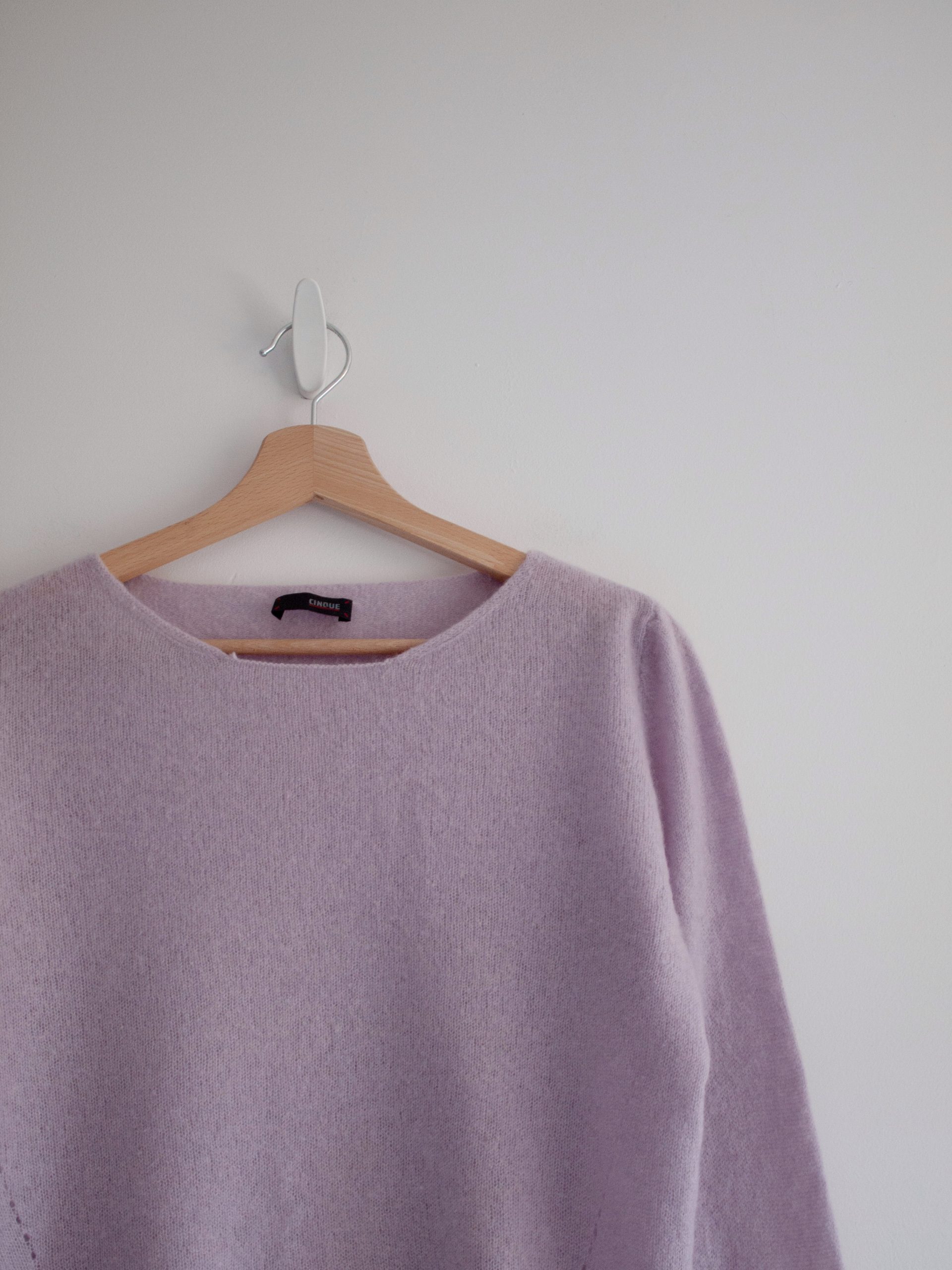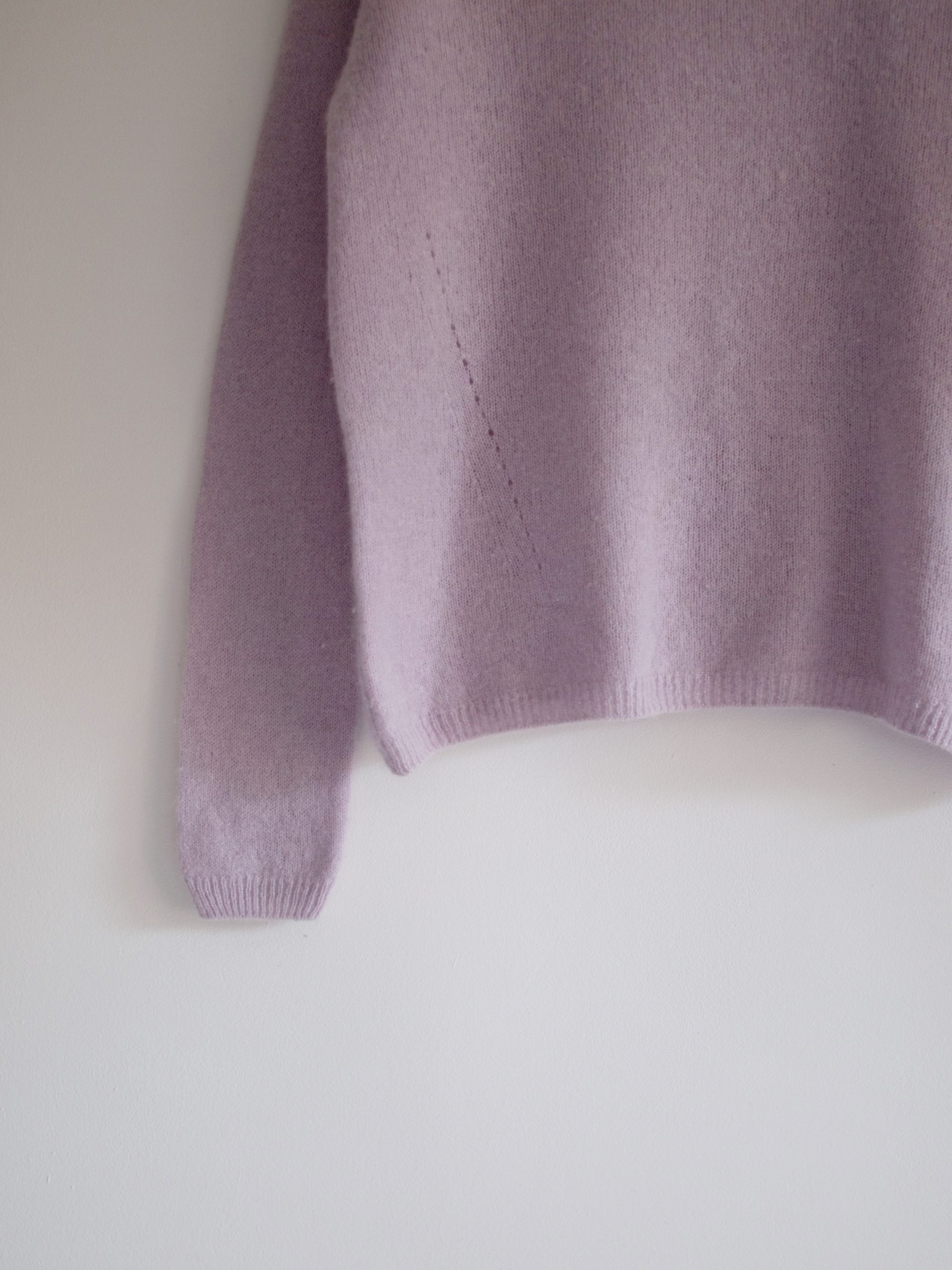 Cienki kaszmirowy sweter w pięknym liliowym kolorze. Rozmiar z metki: brak Skład: 100% kaszmir Stan: bardzo dobry Szerokość w klatce 47 cm Długośćcałkowita 54 cm