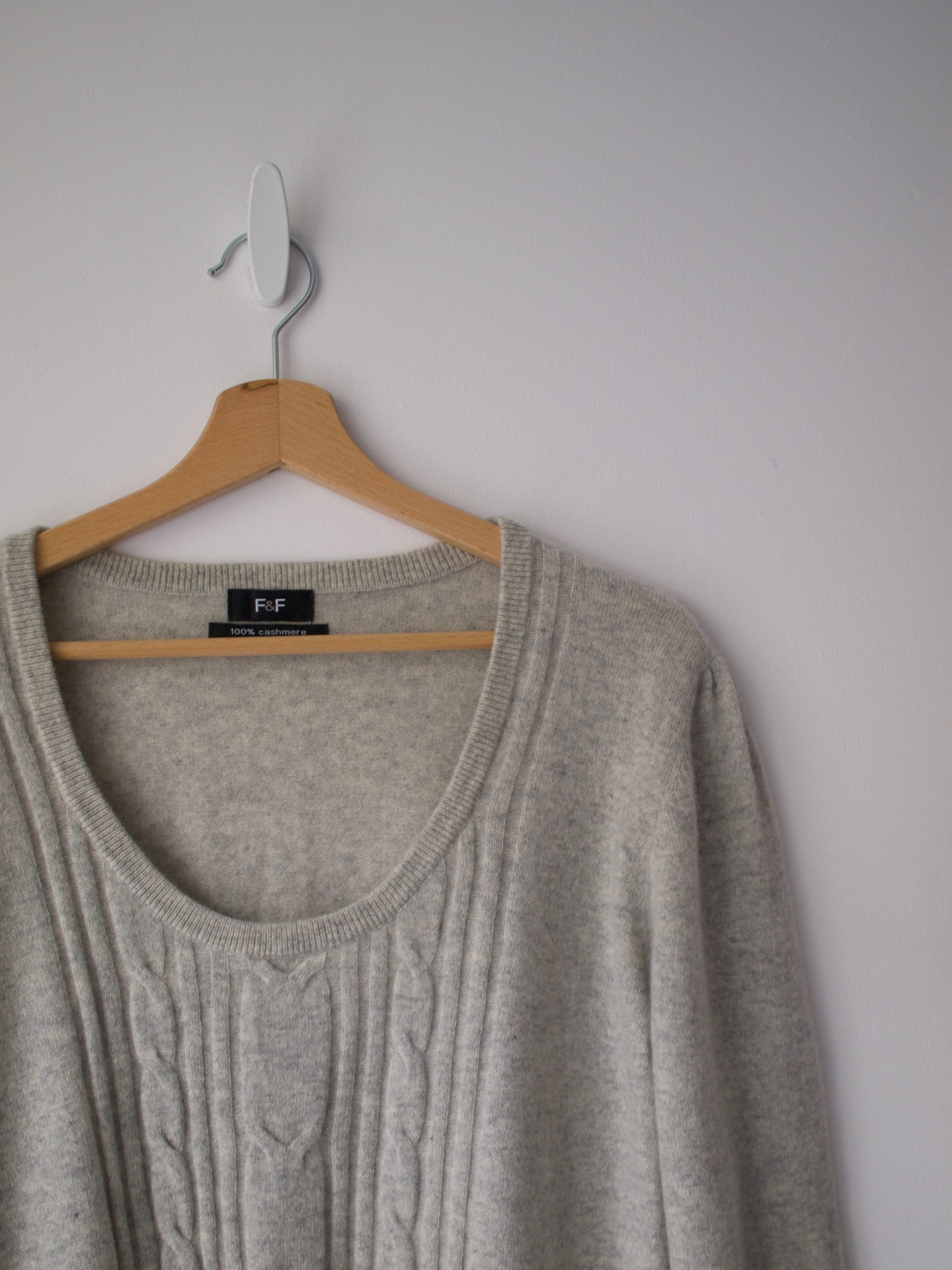Przepiękny wełniany sweter brytyjskiej marki WoolOvers. Rewelacyjny skład 70% merino wool, 30% kaszmir, jest miękki i milutki w dotyku. Rękawy i dół wykończone dłuższym ściągaczem. Rozmiar z metki S, idealny stan.