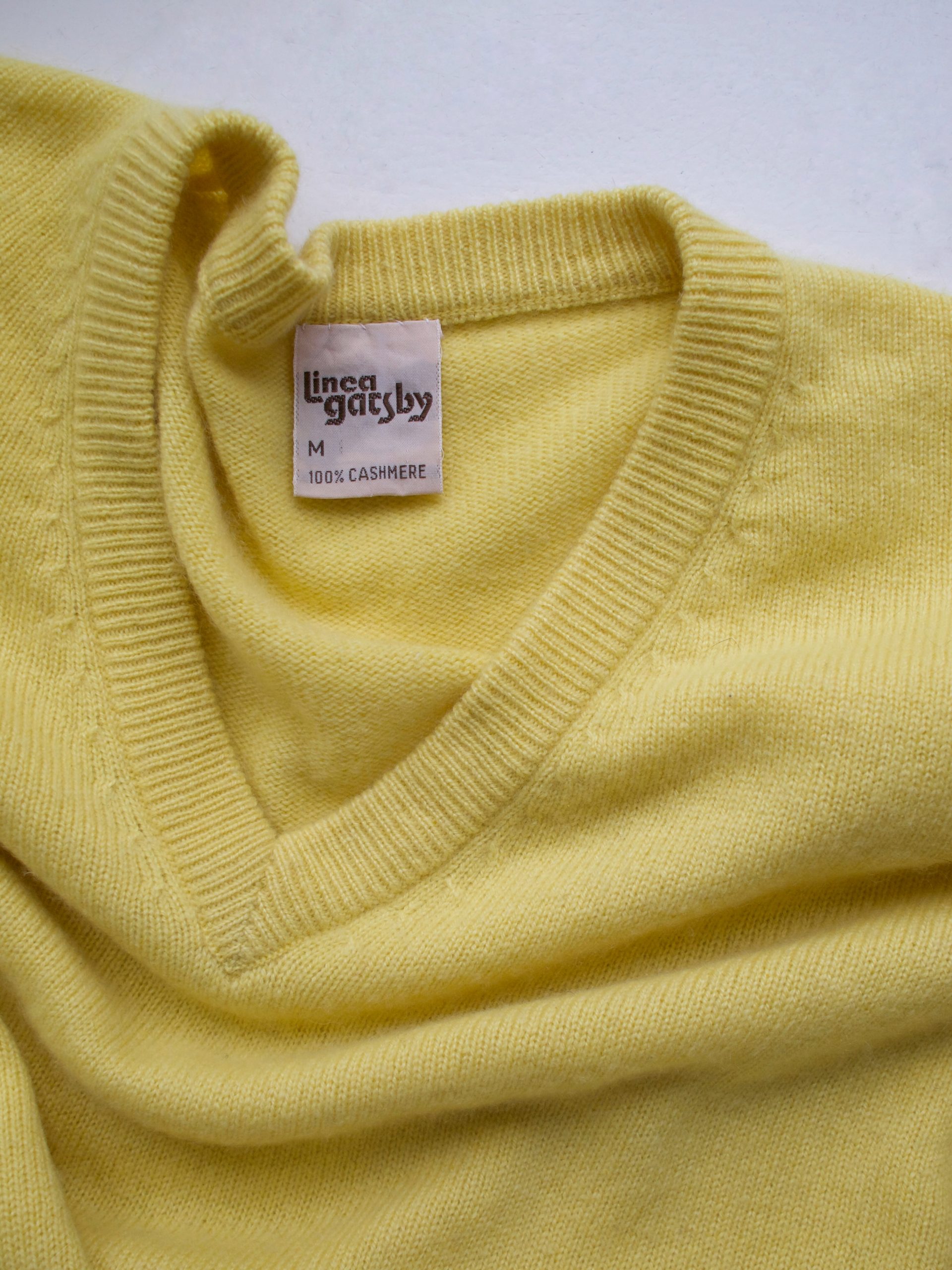 Sweter vintage, wykonany z mięciutkiego kaszmiru. Kolor to pastelowy żółty. Rozmiar z metki: M Skład: 100% kaszmir Stan: bez wad Szerokość w klatce 50 cm Długośćcałkowita 66 cm