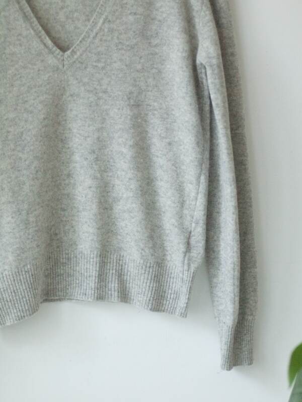Minimalistyczny kaszmirowy sweter o pudełkowym kroju. Sweter bardzo miękki i przyjemny, ma dwie małe zacerowane dziurki, nie widoczne w noszeniu, poza tym brak mankamentów. Wymiary poniżej.