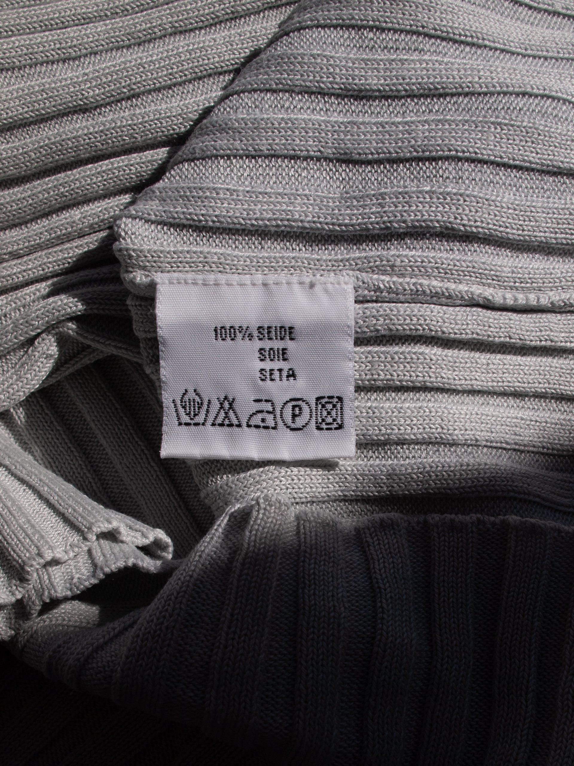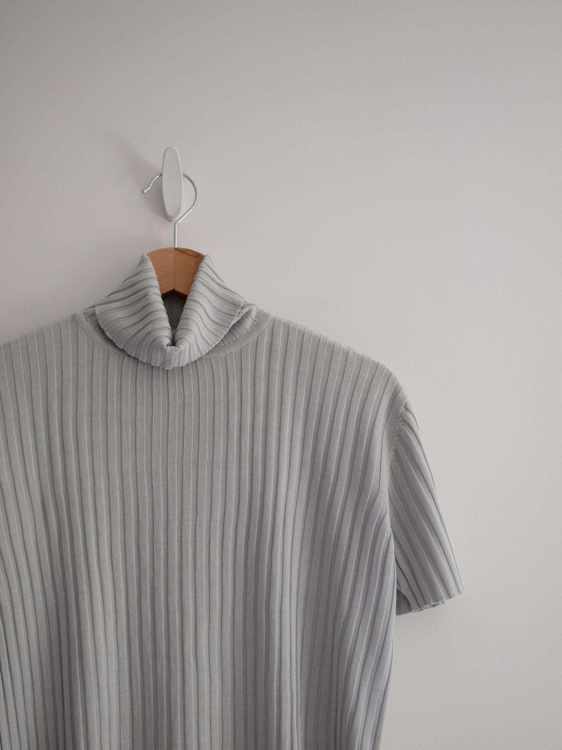 Jedwabny golf w prążki. Idealny jako pierwsza warstwa pod marynarki lub pod gryzące swetry. Rozmiar z metki: XL Skład: 100% jedwab Stan: bez wad Szerokość w klatce 46 cm Długośćcałkowita 55 cm