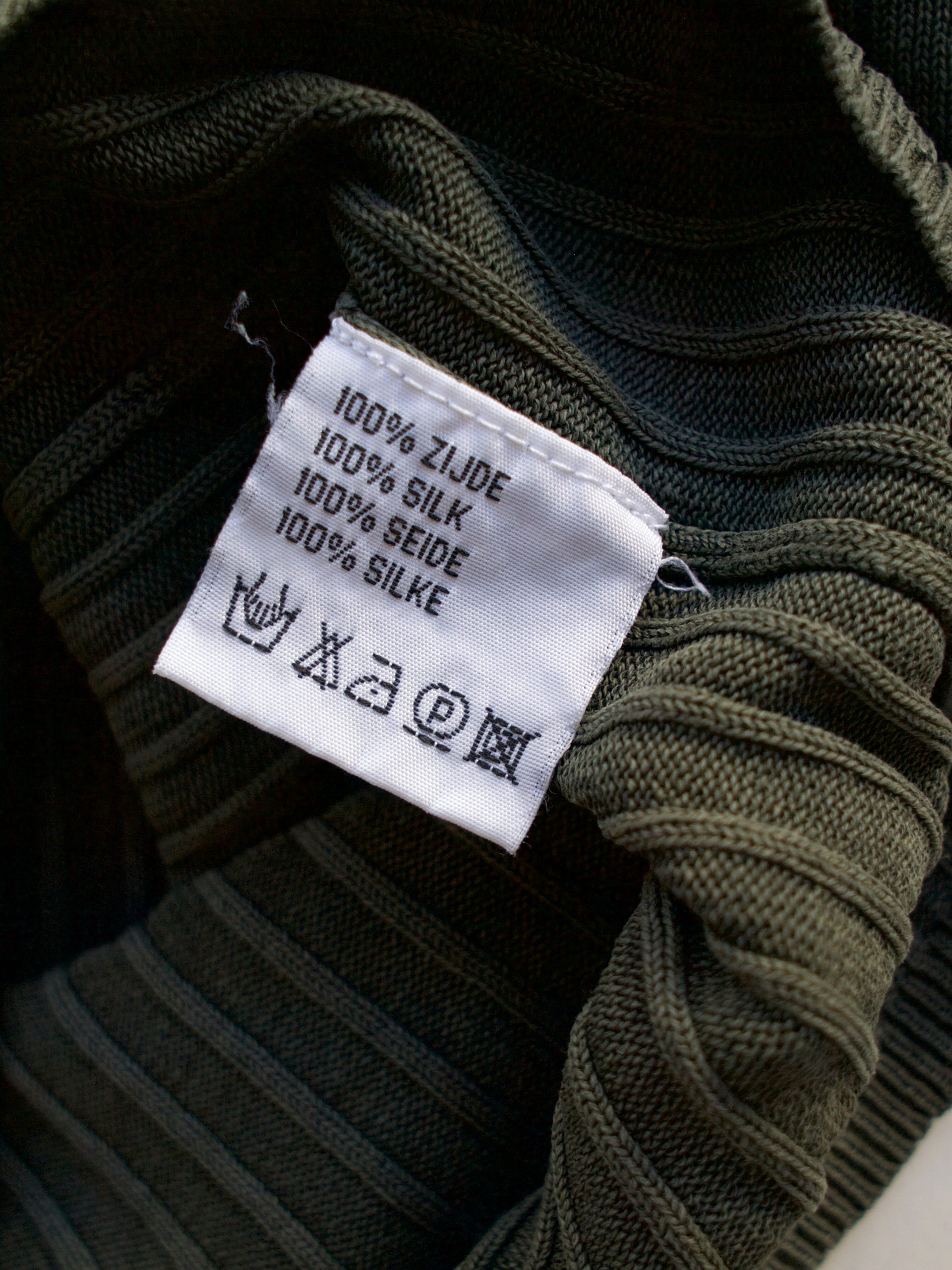 Vintage półgolf w prązki, w 100% wykonany z jedwabiu. Rozmiar z metki: L Skład: jedwab Stan: bardzo dobry Szerokość w klatce 51 cm Długośćcałkowita 57 cm