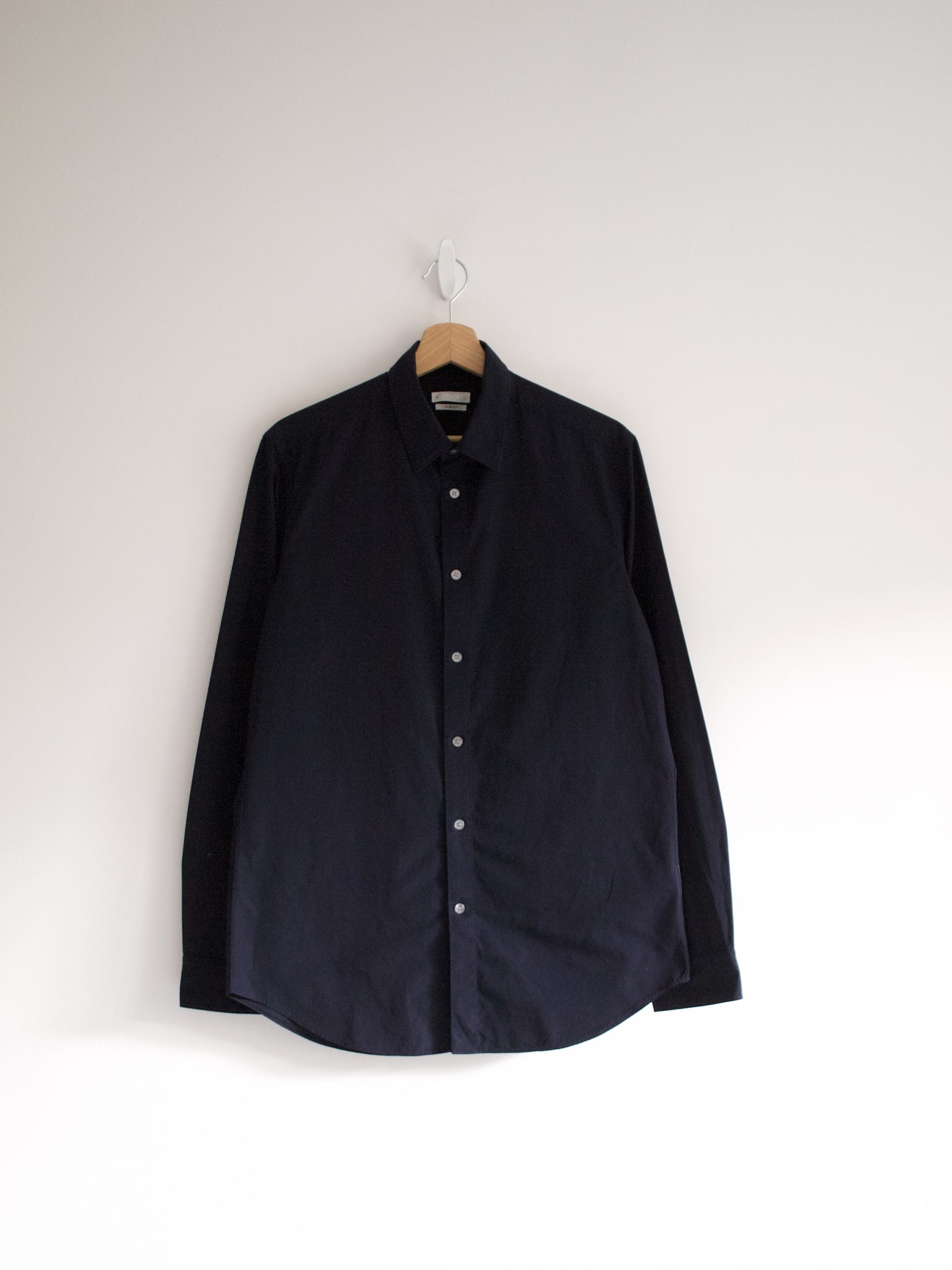 Koszula skandynawskiej marki Arket, męska, o kroju slim fit. Kolor: ciemny granat. Rozmiar z metki: 50 Skład: 100% bawełna Stan: bez wad Szerokość w klatce 52 cm Długośćcałkowita 76 cm