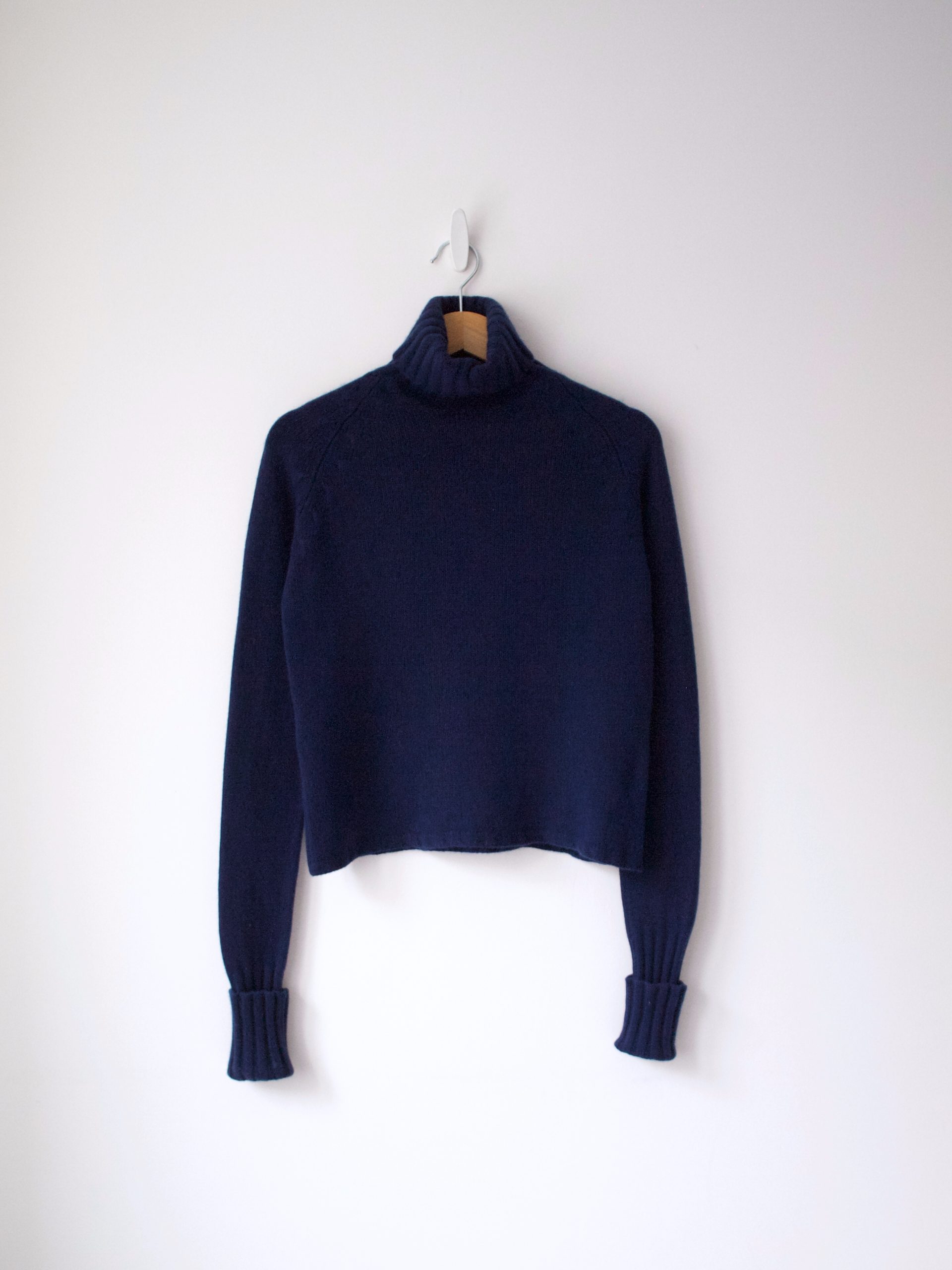 Golf ekskluzywnej marki Banana Republic. Wykonany z mięsistego kaszmiru w kolorze granatowym.
