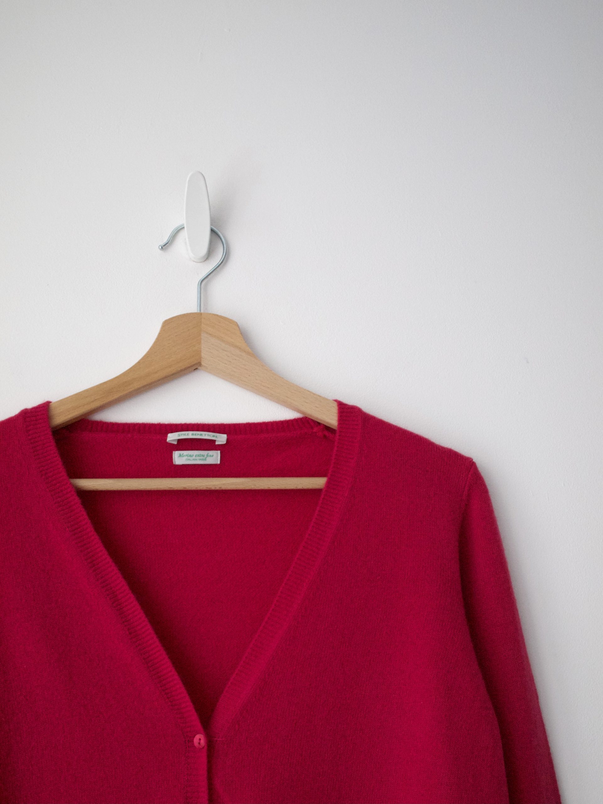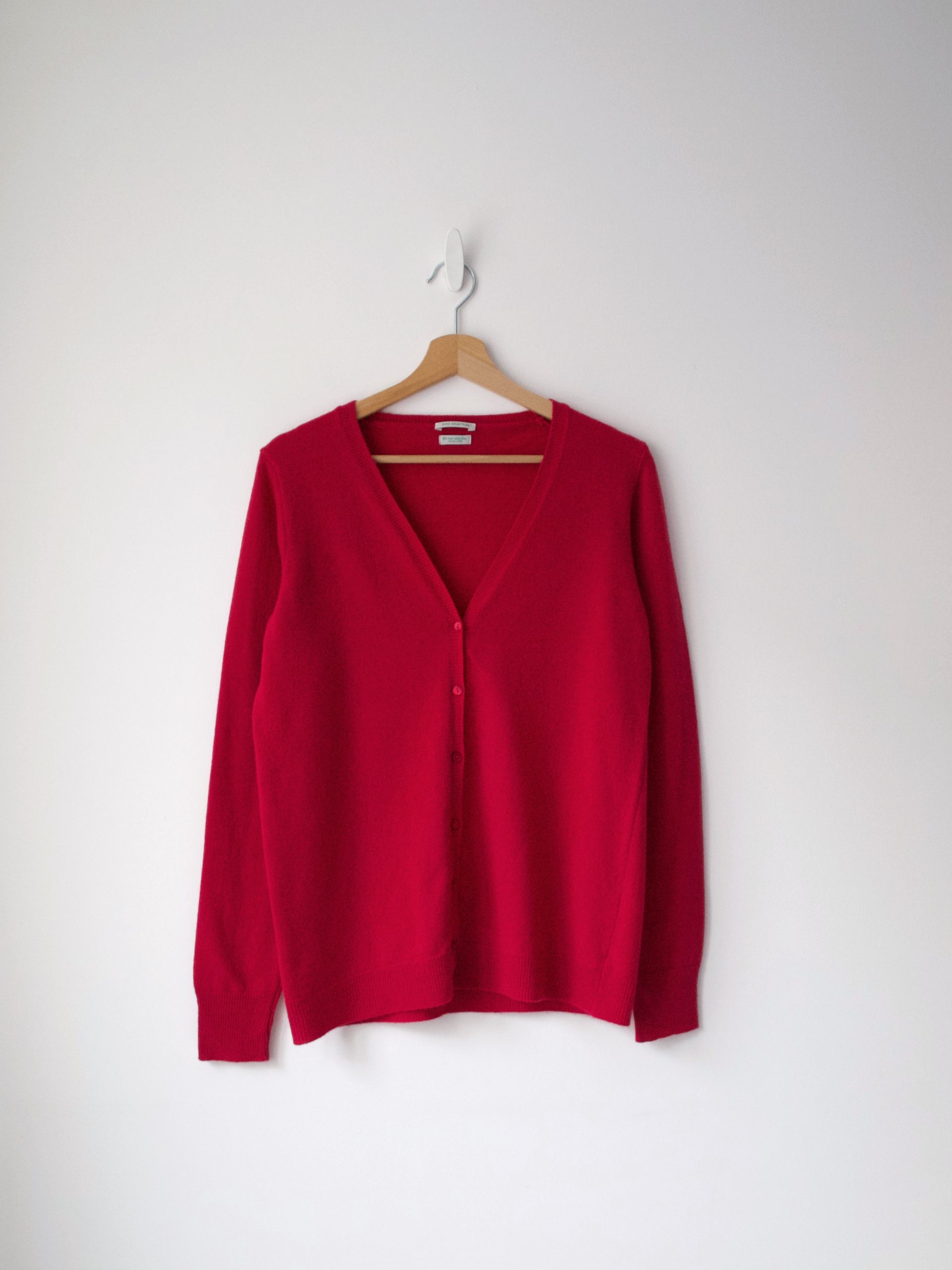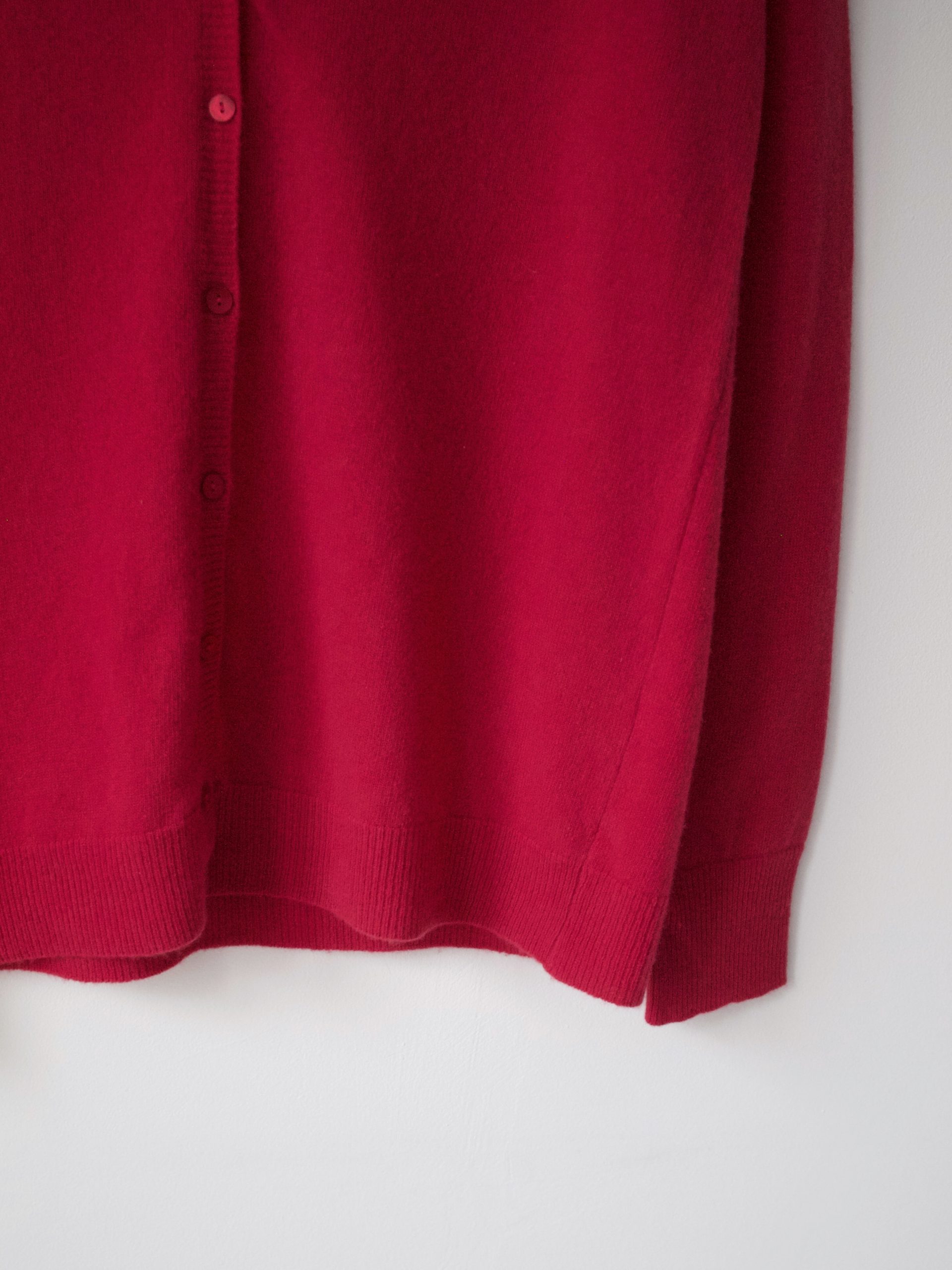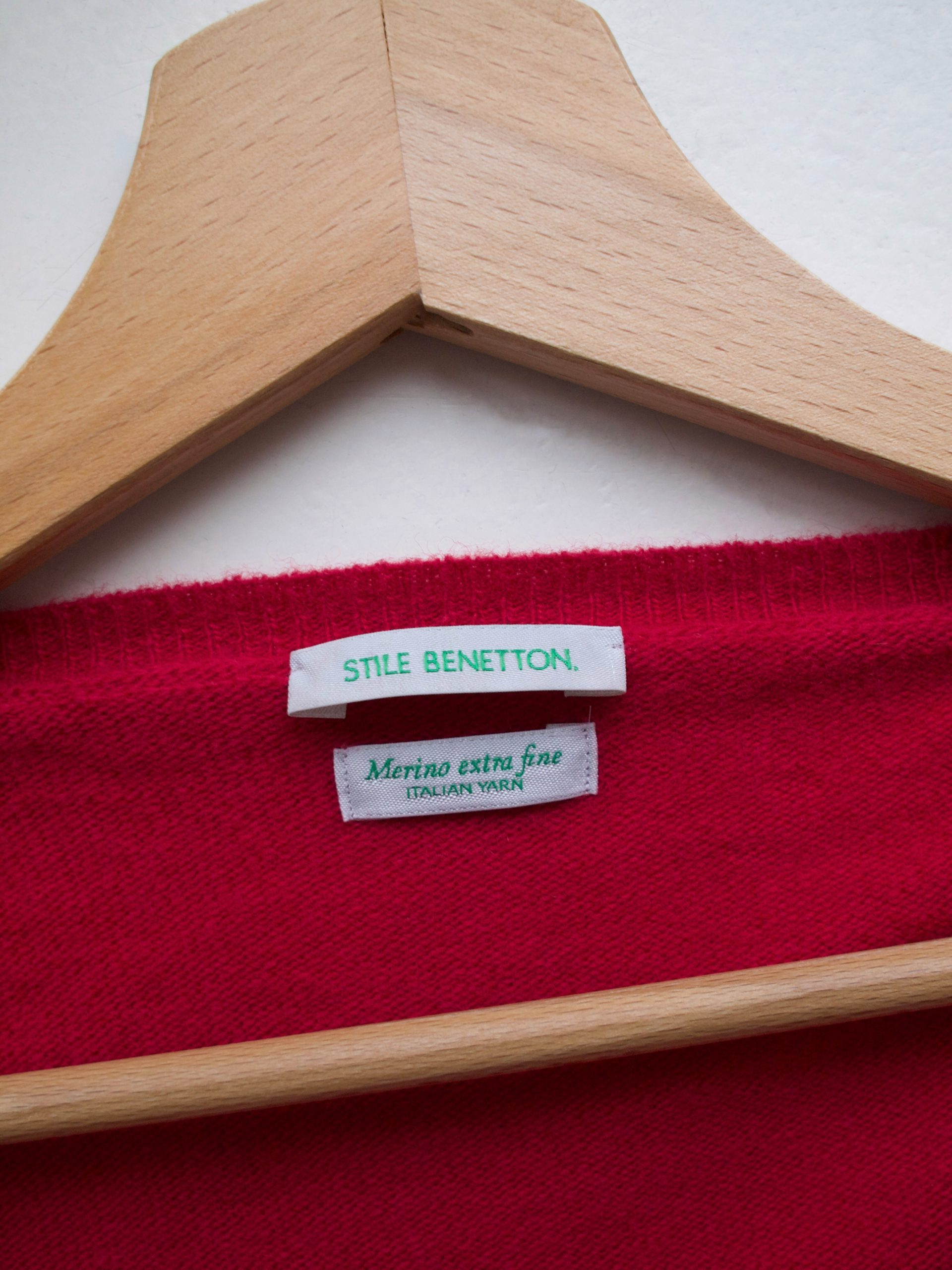Kardigan marki Benetton w kolorze malinowym. W 100% wykonany z wełny merino. Rozmiar z metki: L Skład: 100% merino Stan: bez wad Szerokość w klatce 49 cm Długośćcałkowita 64 cm