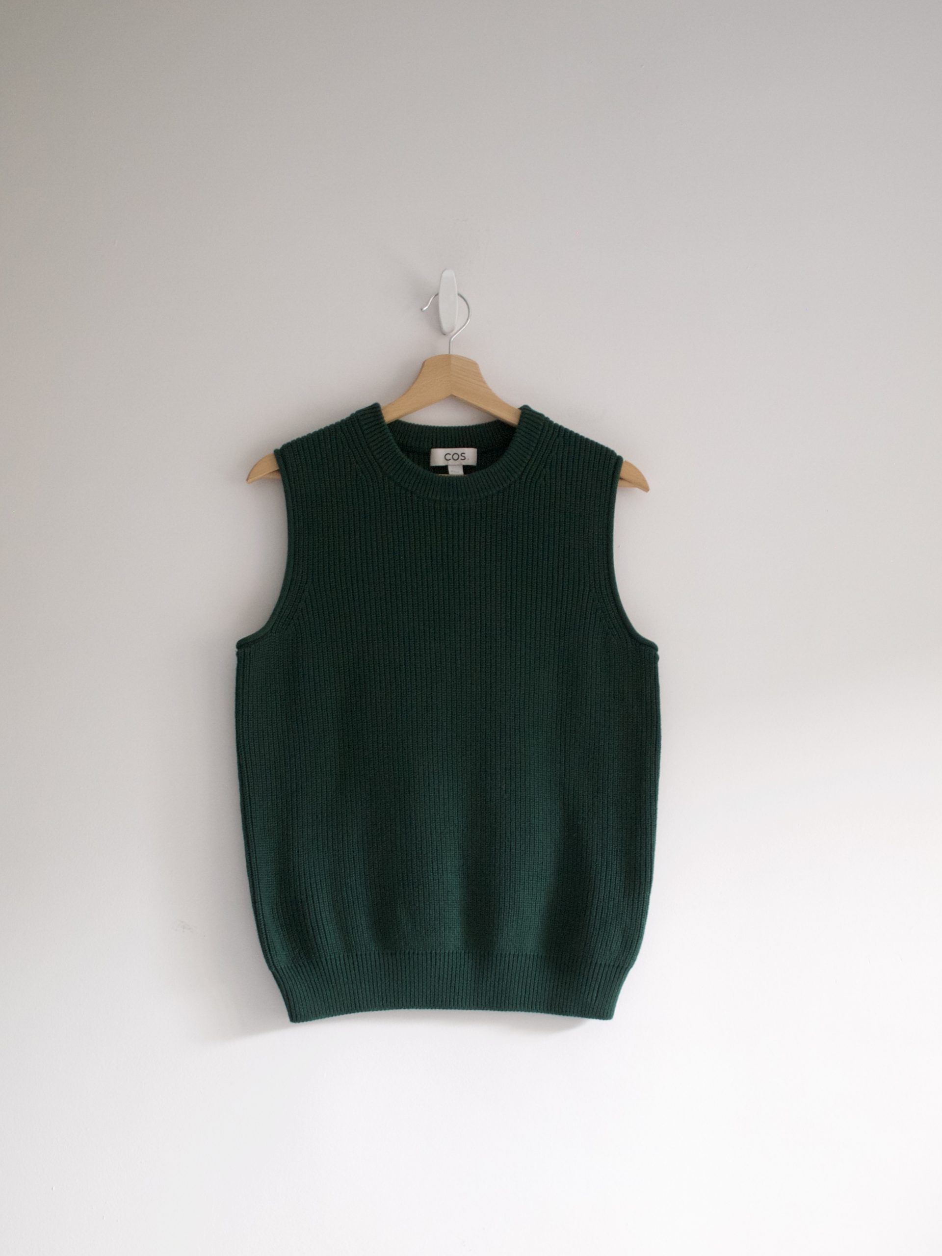 Bezrękawnik marki COS, wykonany w 100% z bawełny organicznej. Rozmiar z metki: S Skład: bawełna Stan: bez wad Szerokość w klatce 47 cm Długośćcałkowita 59 cm
