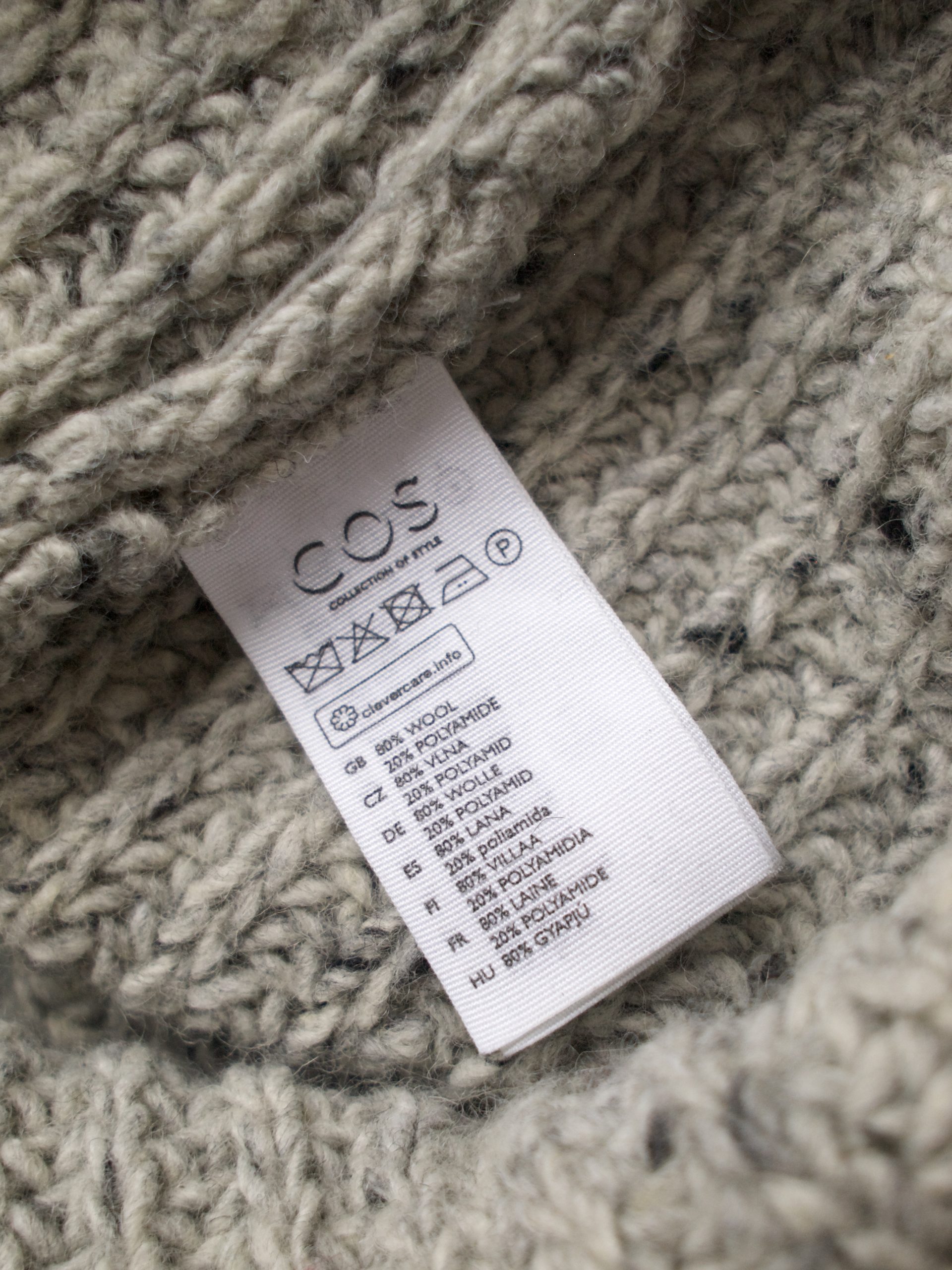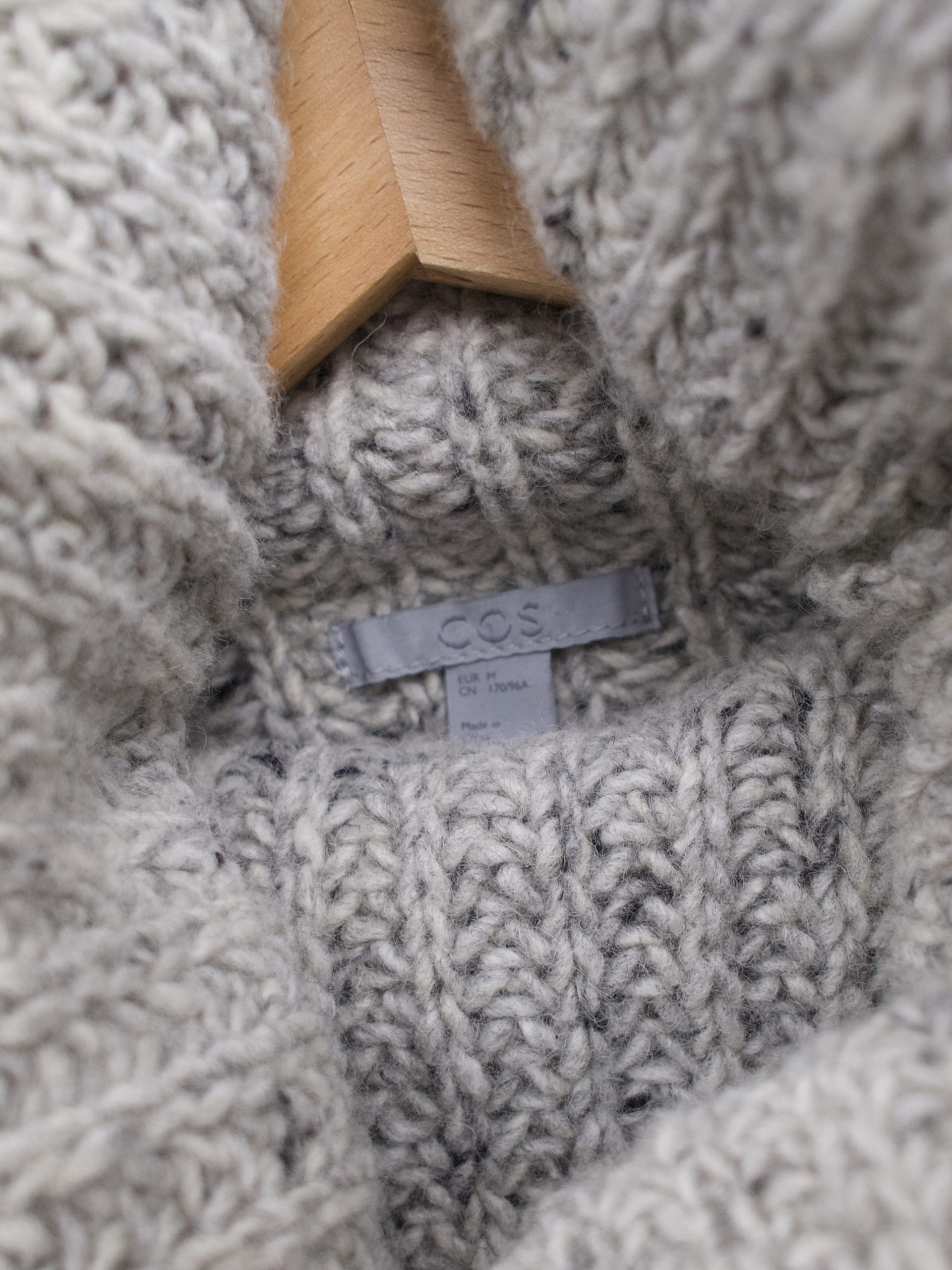 Sweter o grubym splocie skandynawskiej marki COS. Luźny fason. Rozmiar z metki: M, polecam jako one size Skład: na zdjęciu Stan: bez wad Szerokość w klatce 62 cm Długośćcałkowita 67 cm