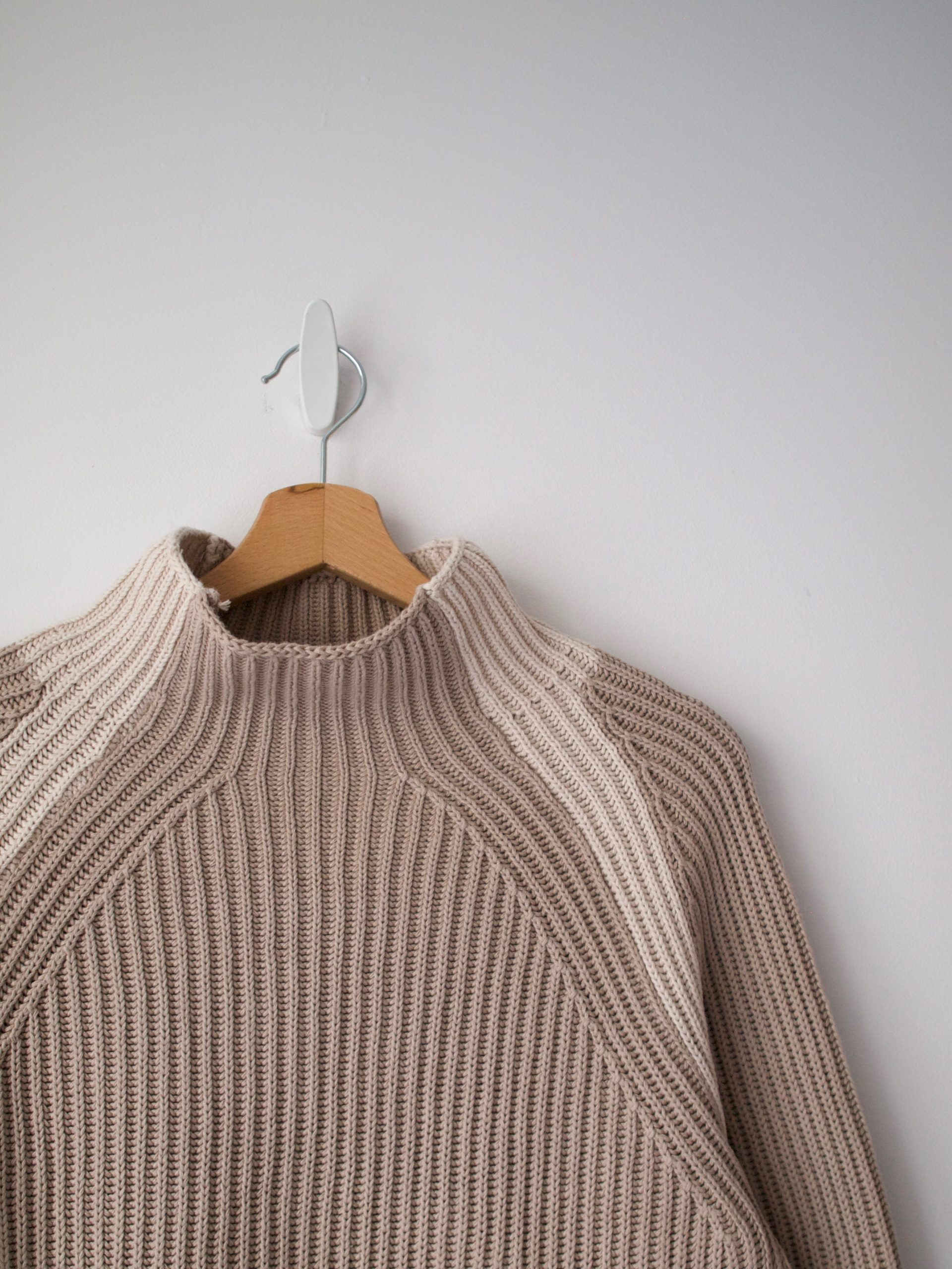 Minimalistyczny wełniany sweter z golfem. Idealny stan, materiał nie gryzie. Brak metki z rozmiarem, na oko jest to L, na mniejsze rozmiary idealny jako oversize (proszę sprawdzać wymiary).