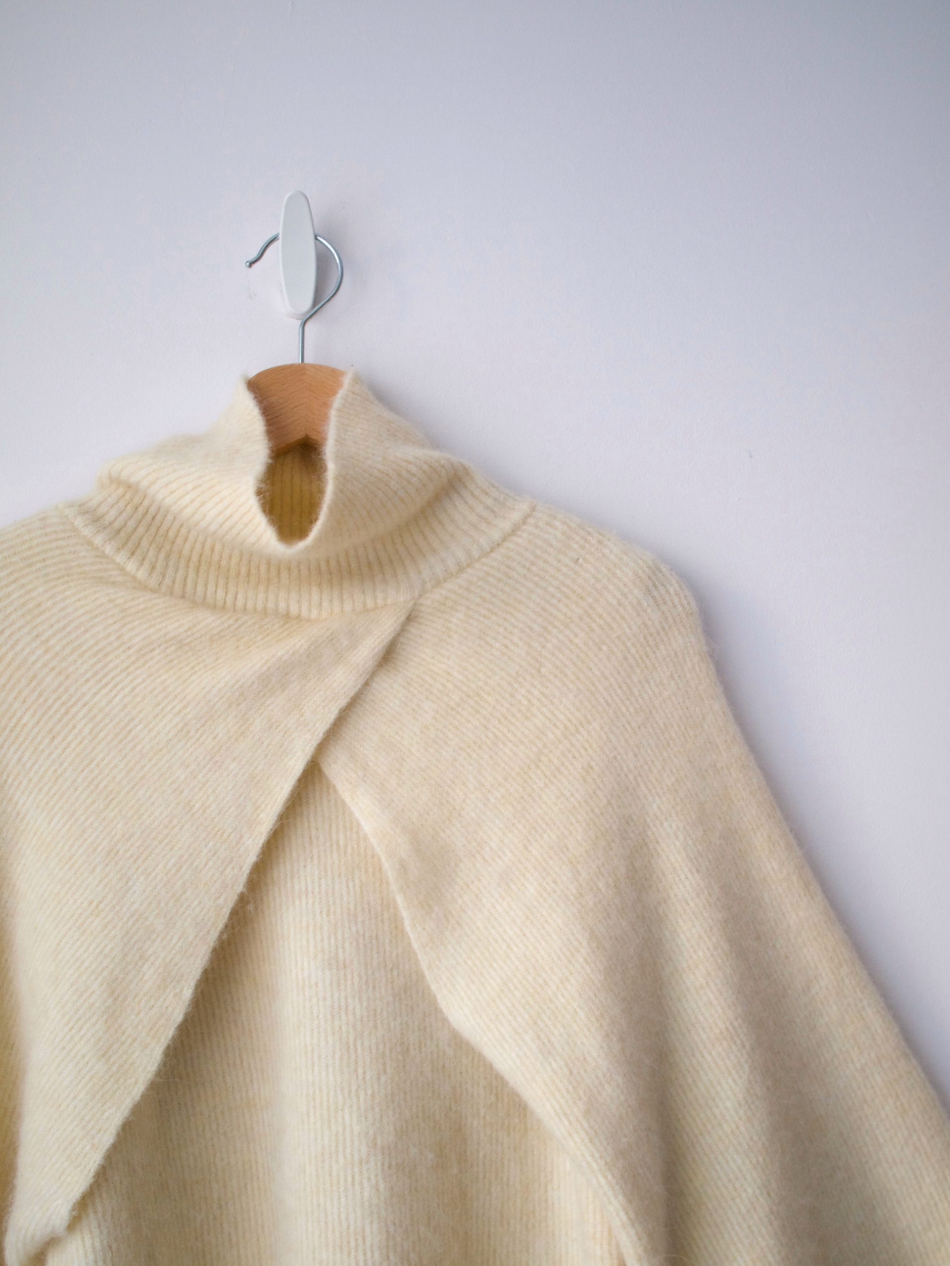 Sweter ekskluzywnej skandynawskiej marki Day Birger et Mikkelsen o oryginalnym fasonie. Posiada bardzo luźne rękawy typu cape (peleryna) oraz golf. Wykonany z puszystej, przyjemnej w dotyku włóczki z dużym udziałem wełny oraz alpaki.