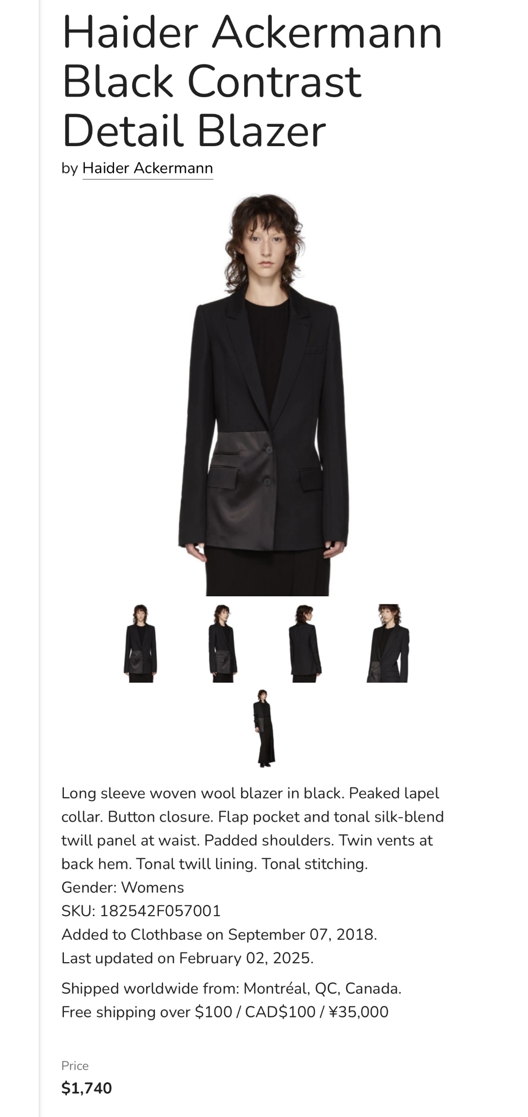 Unikatowa marynarka projektu Haidera Ackermanna, obecnego dyrektora kreatywnego domu mody Tom Ford. Projektant znany jest ze współpracy z ikonami kina, takimi jak Tilda Swinton czy Timothée Chalamet. Marynarka w 100% wykonana z wysokogatunkowej wełny, z kontrastową wstawką w talii. Cena katalogowa modelu to 1 740 USD, czyli około 6 400 zł.