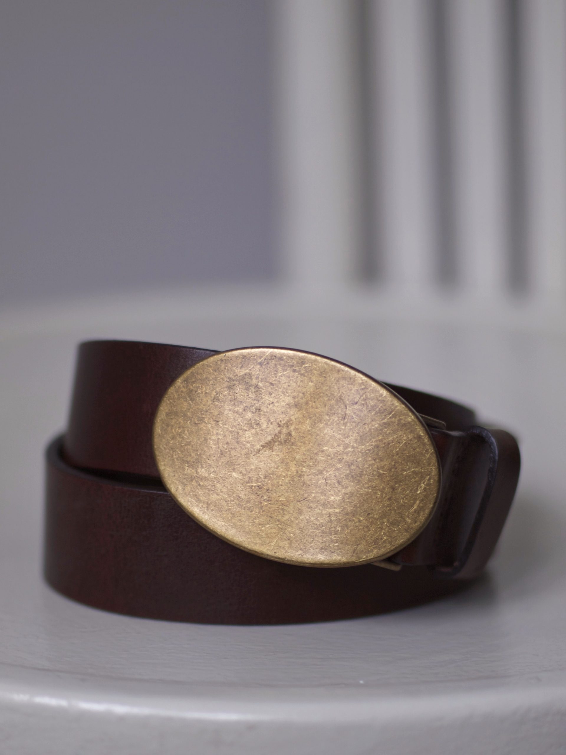 Pasek w czekoladowym kolorze wykonany ze skóry naturalnej. Długość 75 cm. Idealny stan
