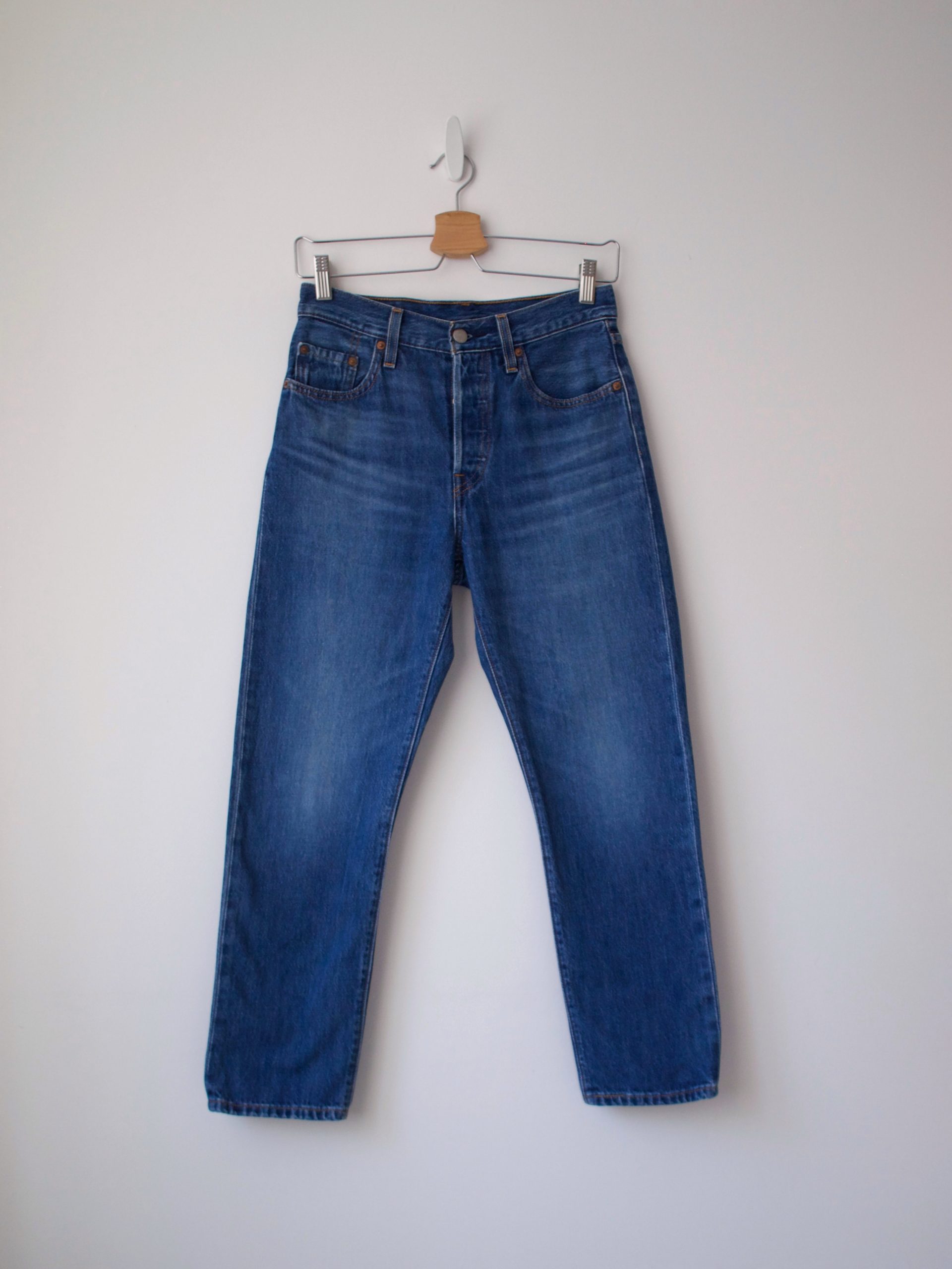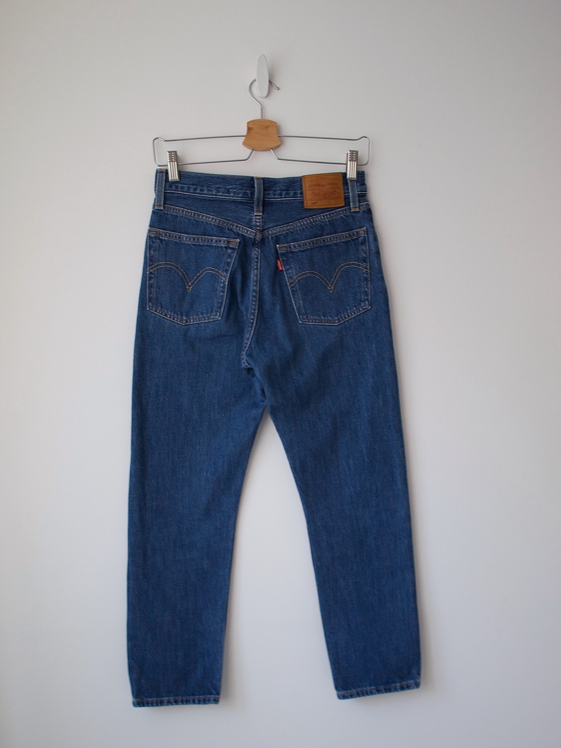 Jeansy marki Levi’s, model 501. Rozmiar z metki: W25L26 Skład: 100% bawełna Stan: bez wad Szerokość w pasie 35 cm Szerokość w biodrach 44 cm Długość całkowita 90 cm
