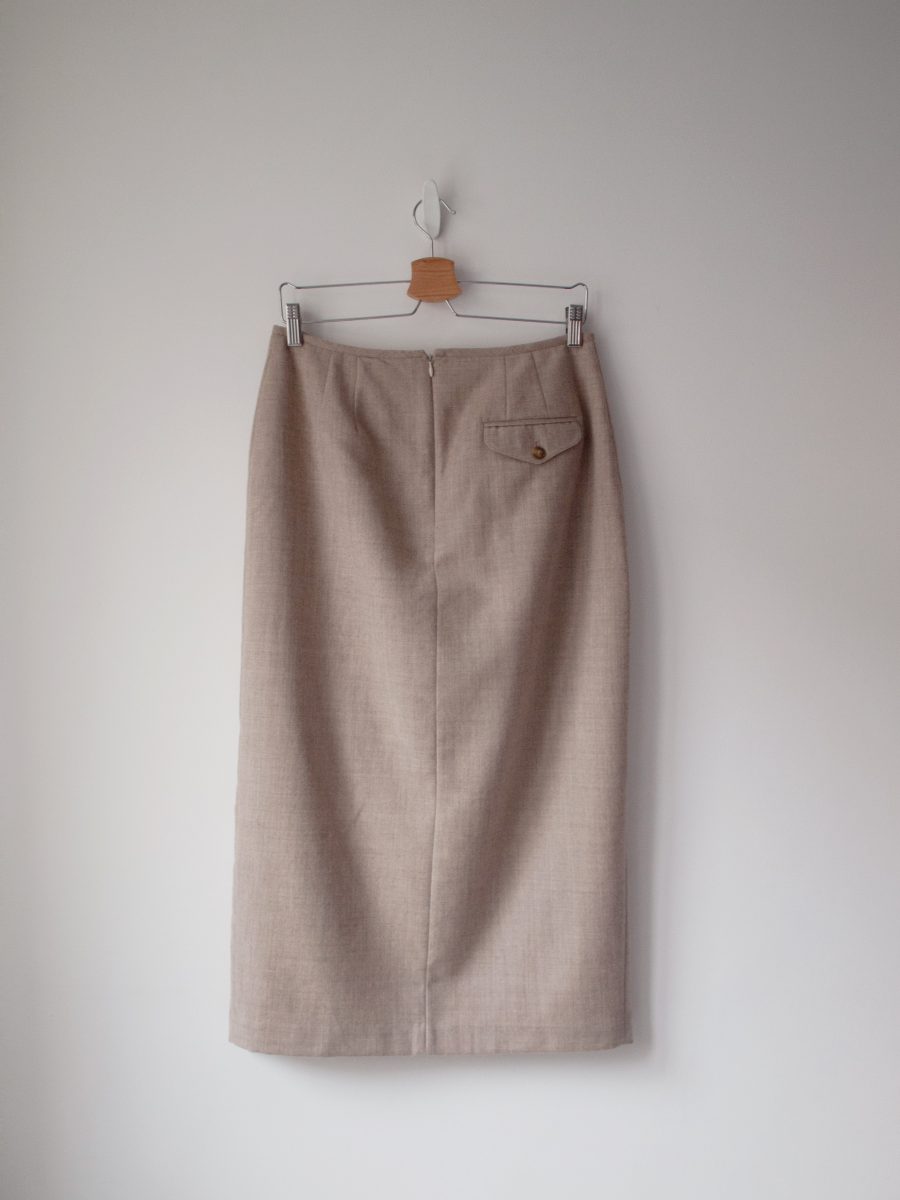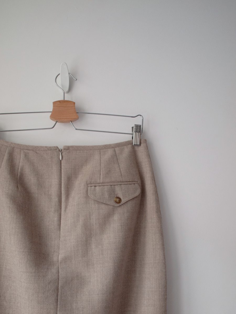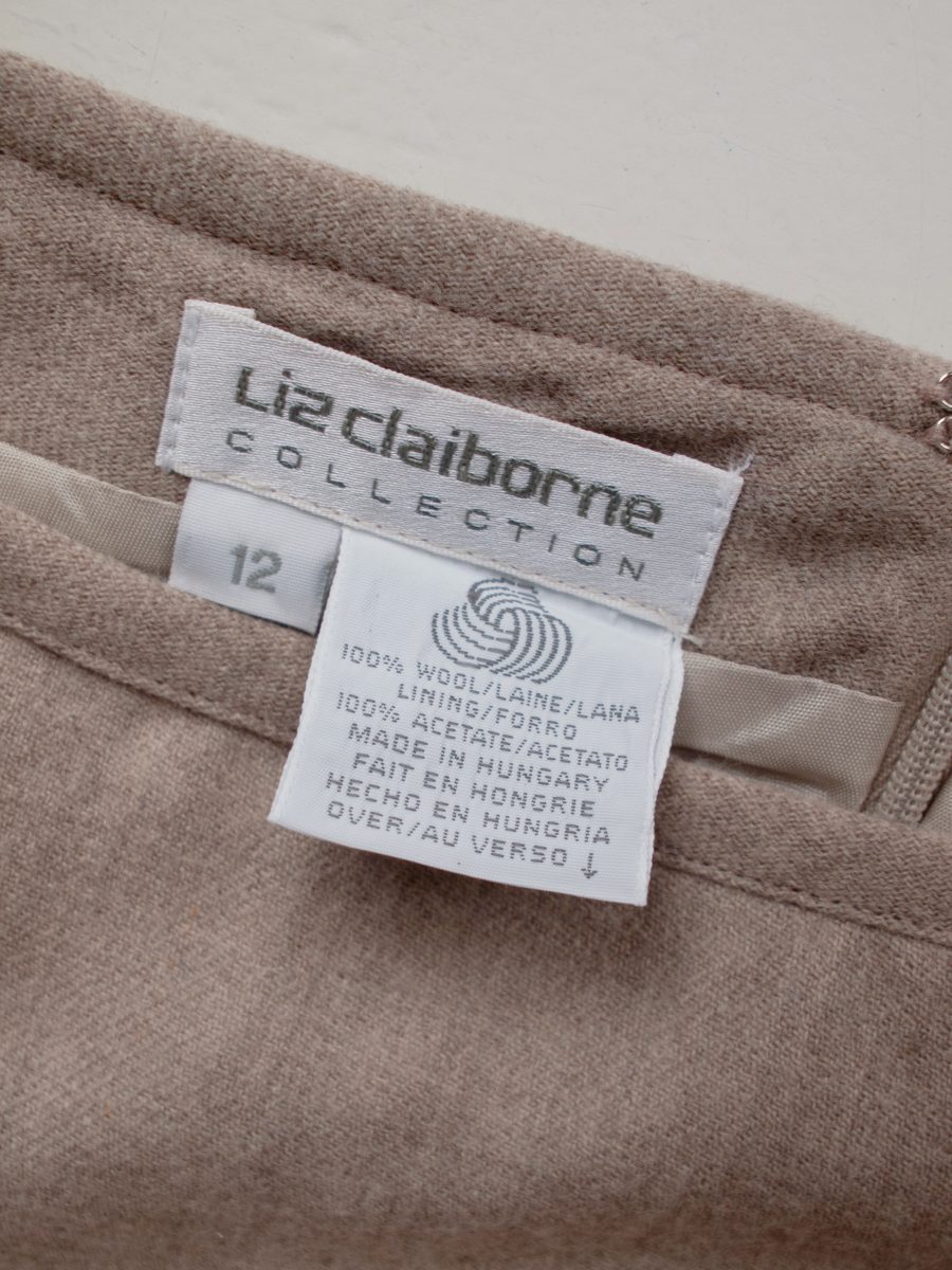Unikatowa spódnica vintage amerykańskiej projektantki Liz Claiborne. W 100% wykonana z wysokiej jakości wełny, z dbałością o szczegóły. Zapinana na tylny zamek, z podszewką.