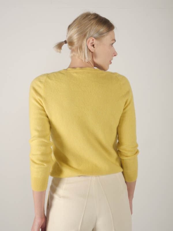 Klasyczny sweter M&S z dekoltem w serek. Skład to 100% kaszmir, bardzo dobry stan, jest minimalnie sfilcowany, nie jest to zauważalne, po prostu jest trochę sztywniejszy.