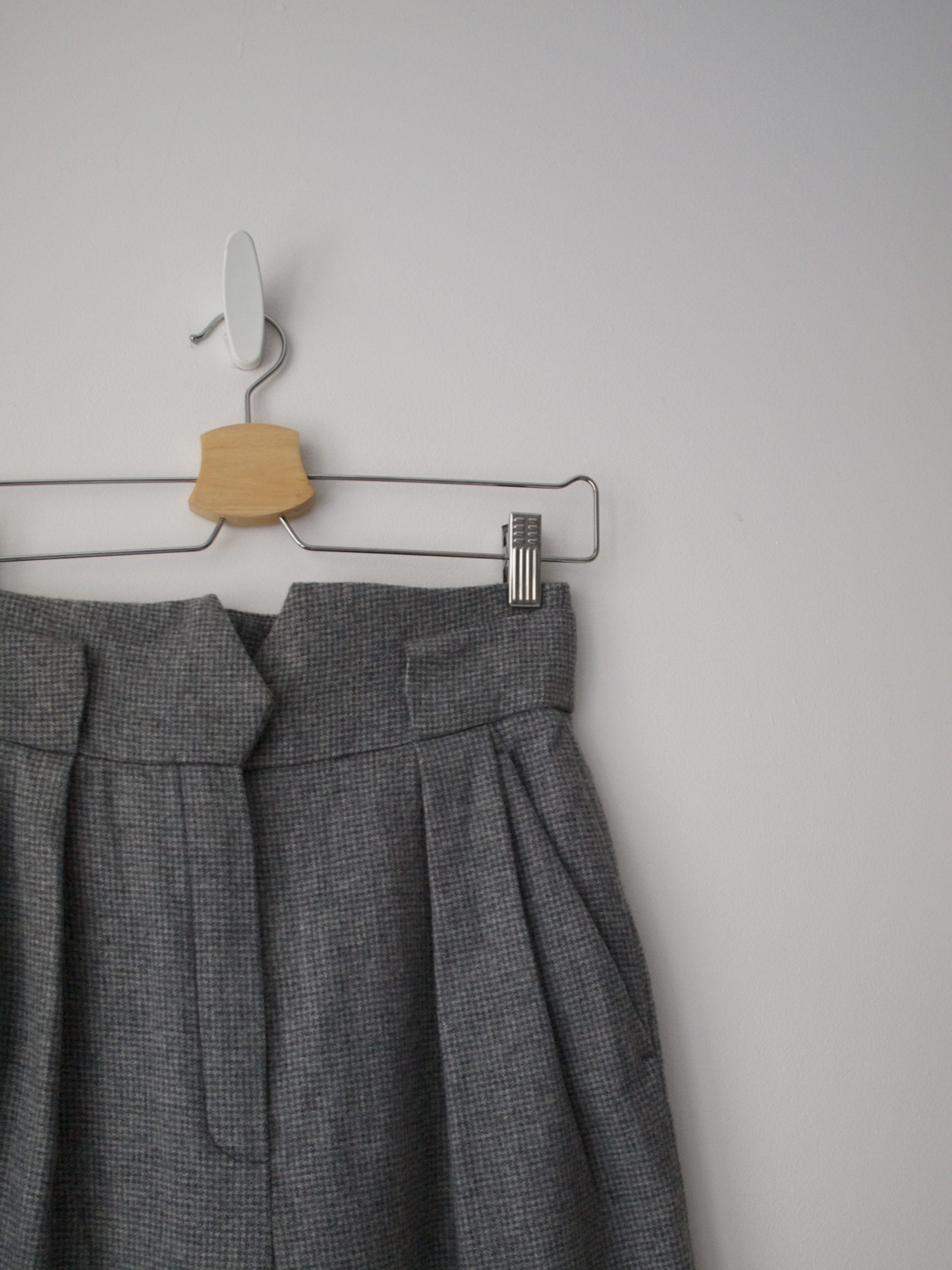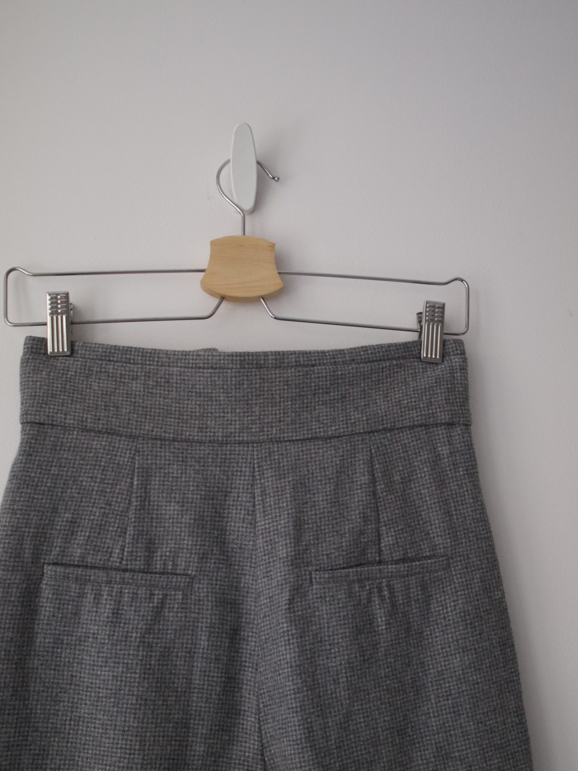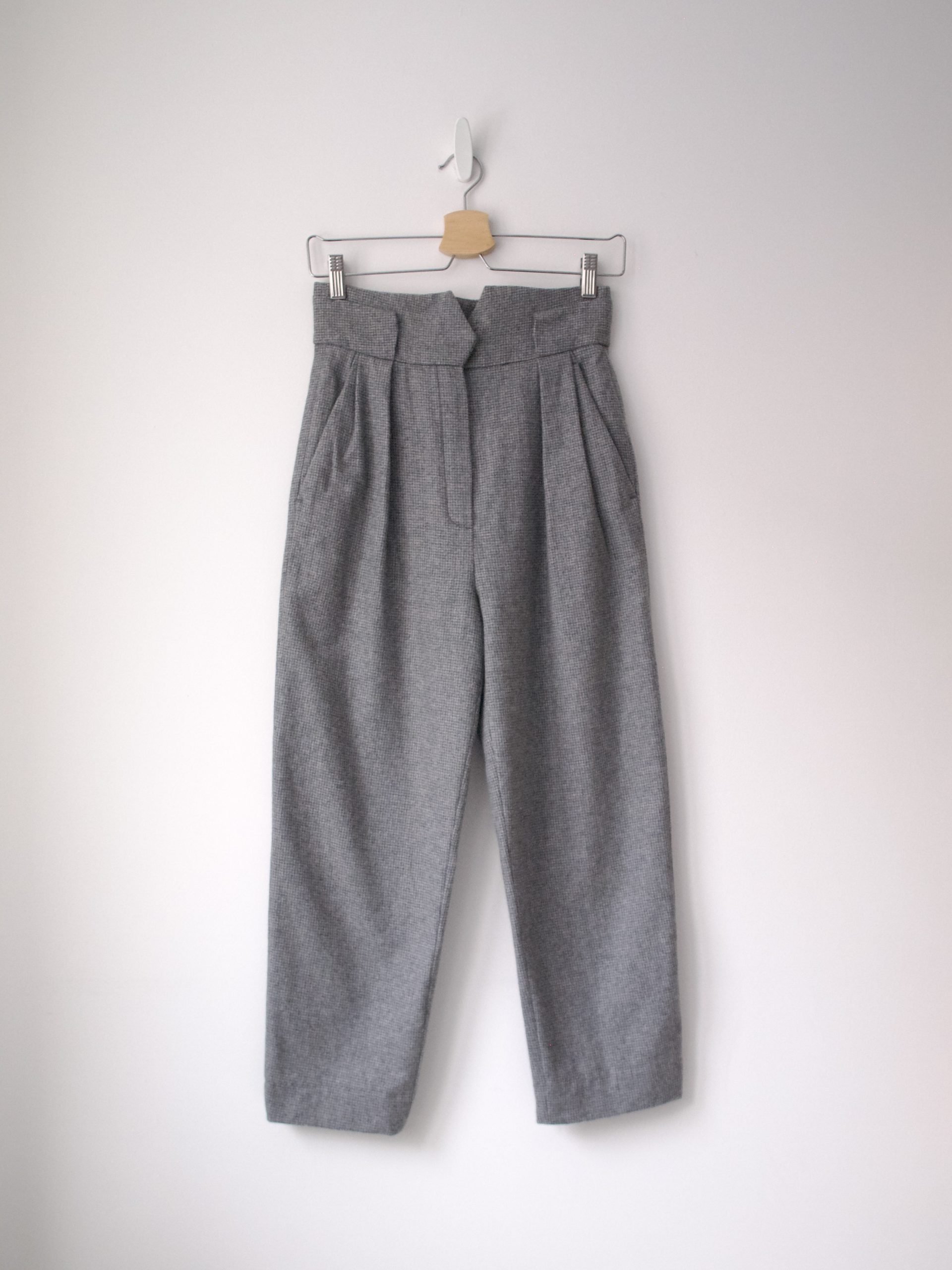Minimalistyczne spodnie vintage z bardzo wysokim stanem. Skład 100% poliester. Rozmiar z metki 40, bez wad.