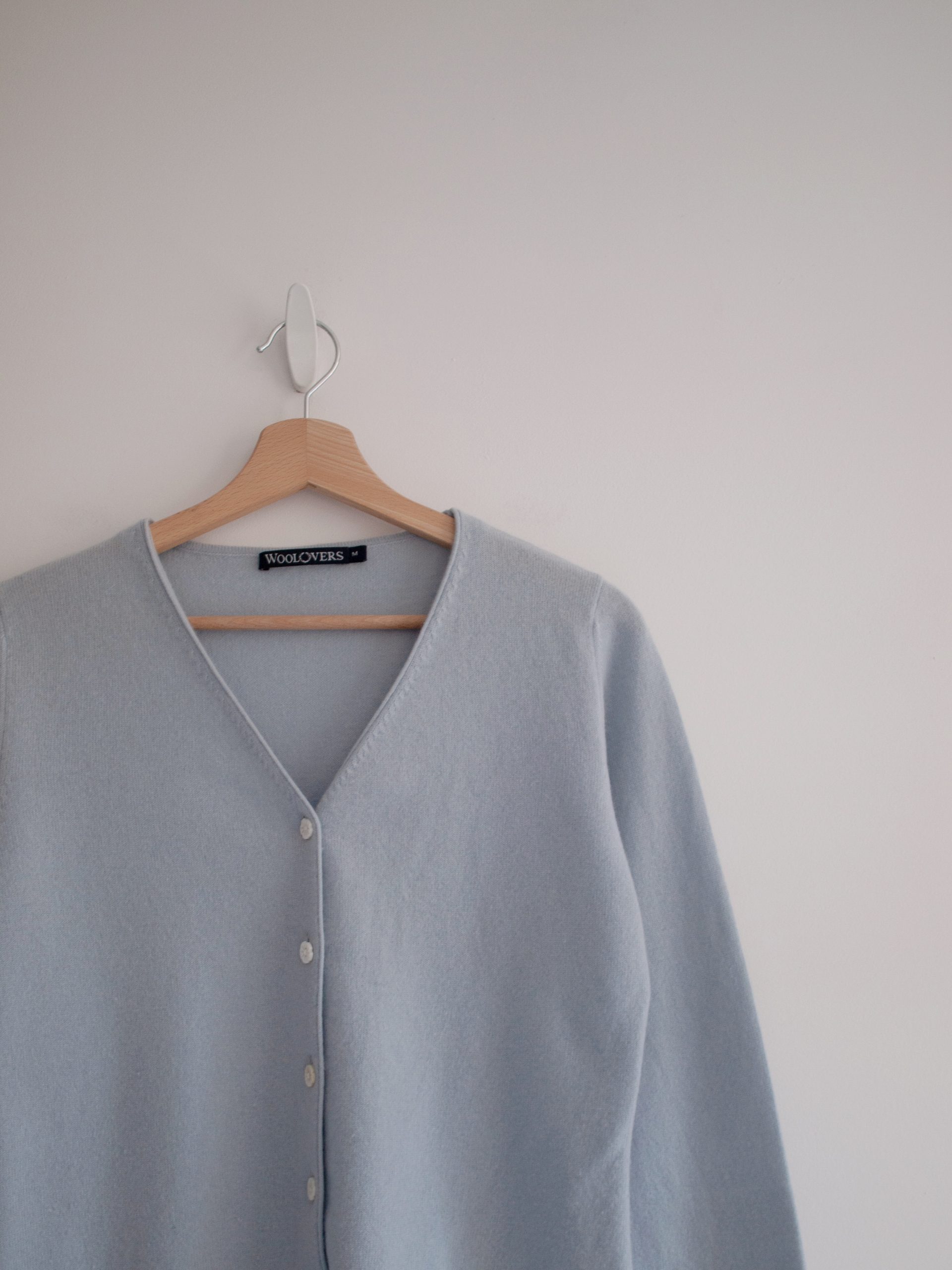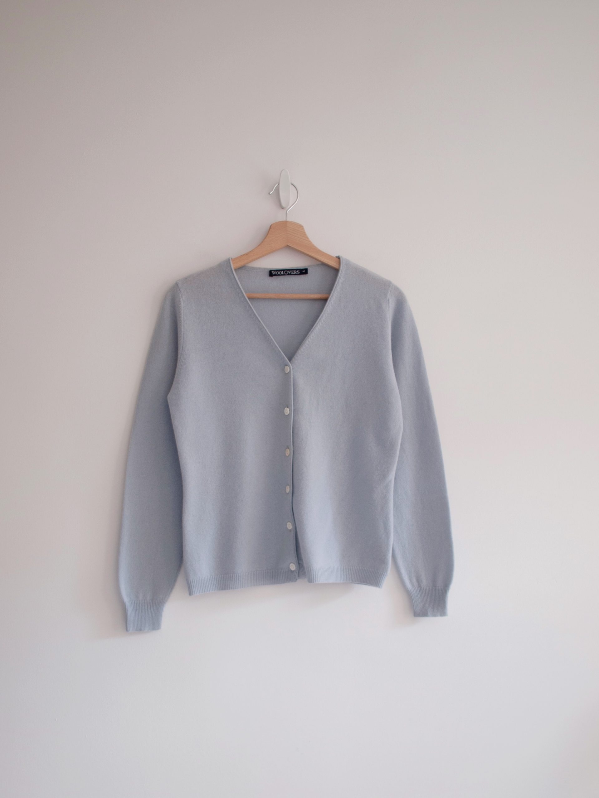 Kardigan brytyjskiej marki Woolovers, wykonany z miękkiej i przyjemnej w dotyku mieszanki wełny merino oraz kaszmiru.
