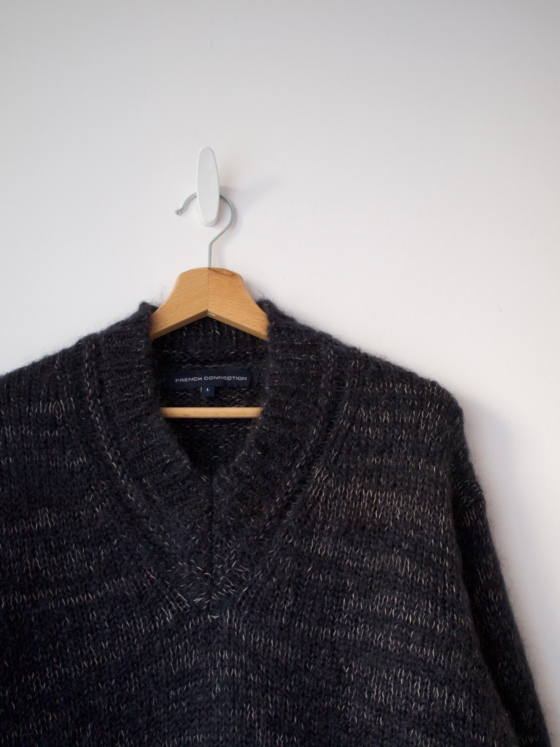 Gruby i bardzo puszysty sweter marki French Connection. Rozmiar z metki: L Skład: 67% moher, 14% poliamid, 12% bawełna, 7% wełna Stan: bez wad Szerokość w klatcecm Długośćcałkowita cm
