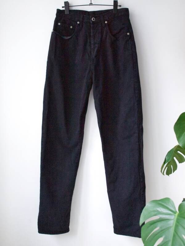 Jeansy vintage o kroju marchewkowym. Wysoki stan, zawężane w talii, wykonane z grubej bawełny. Polecam na XS-S, wymiary poniżej. Bez wad.