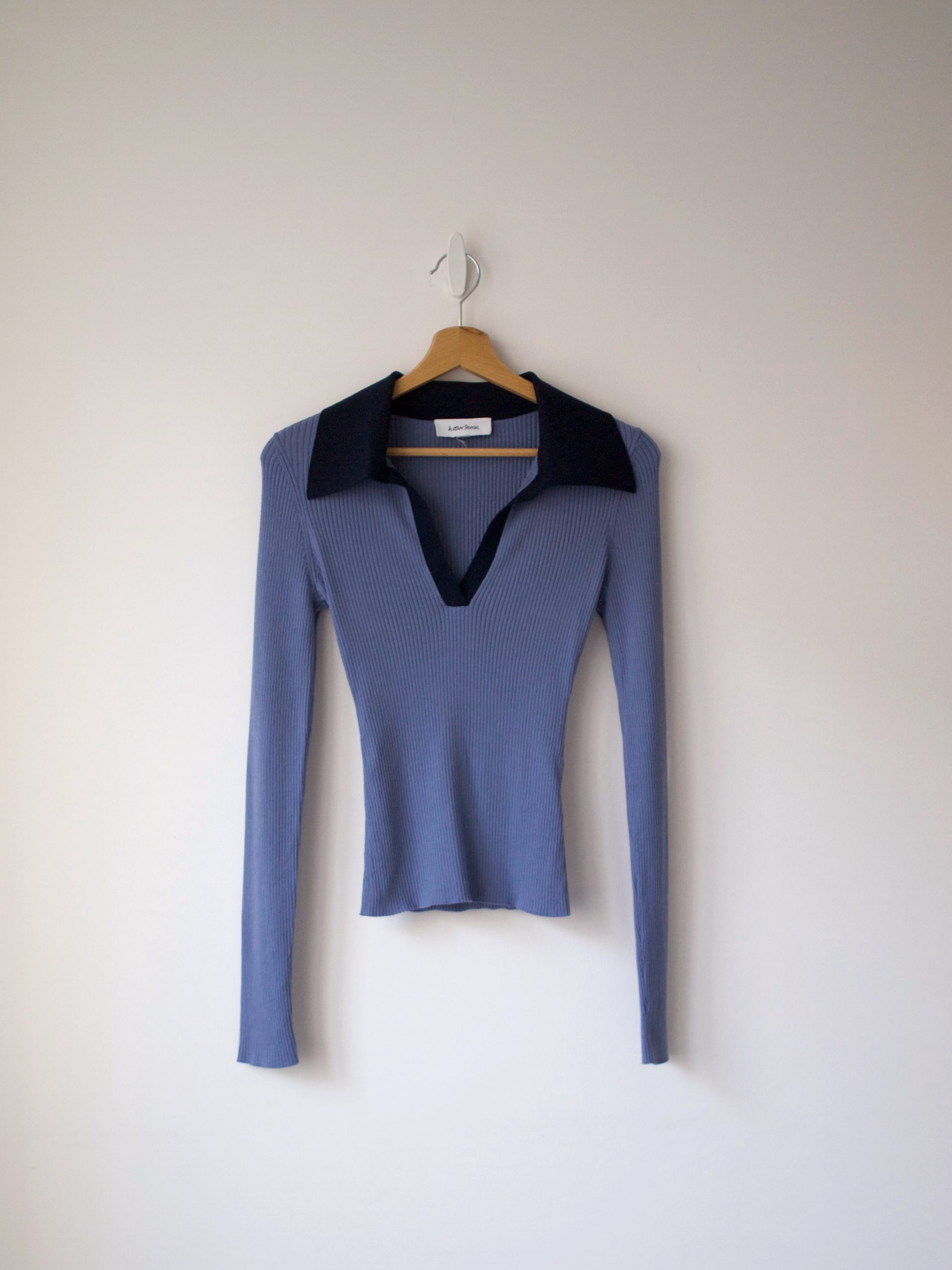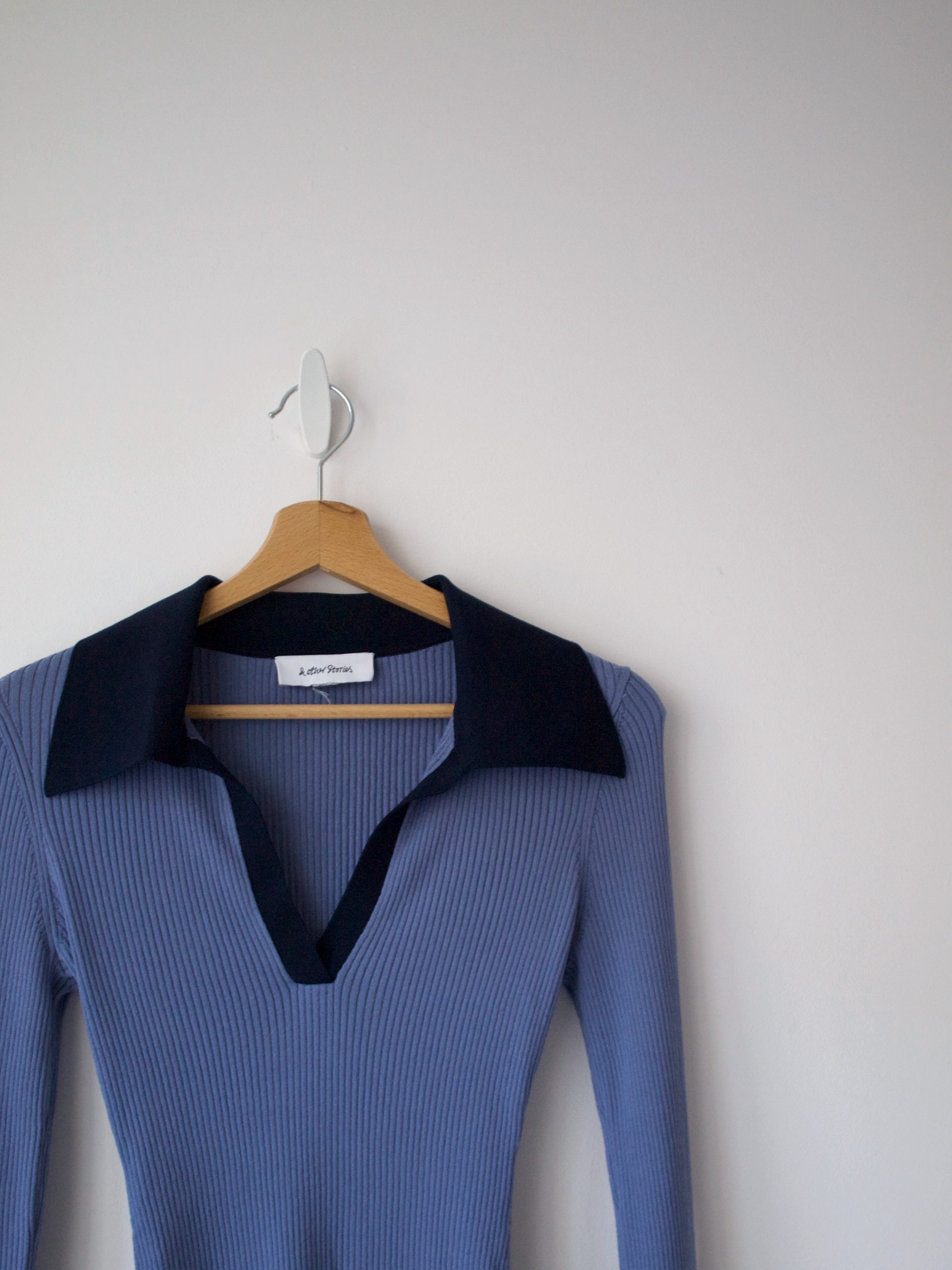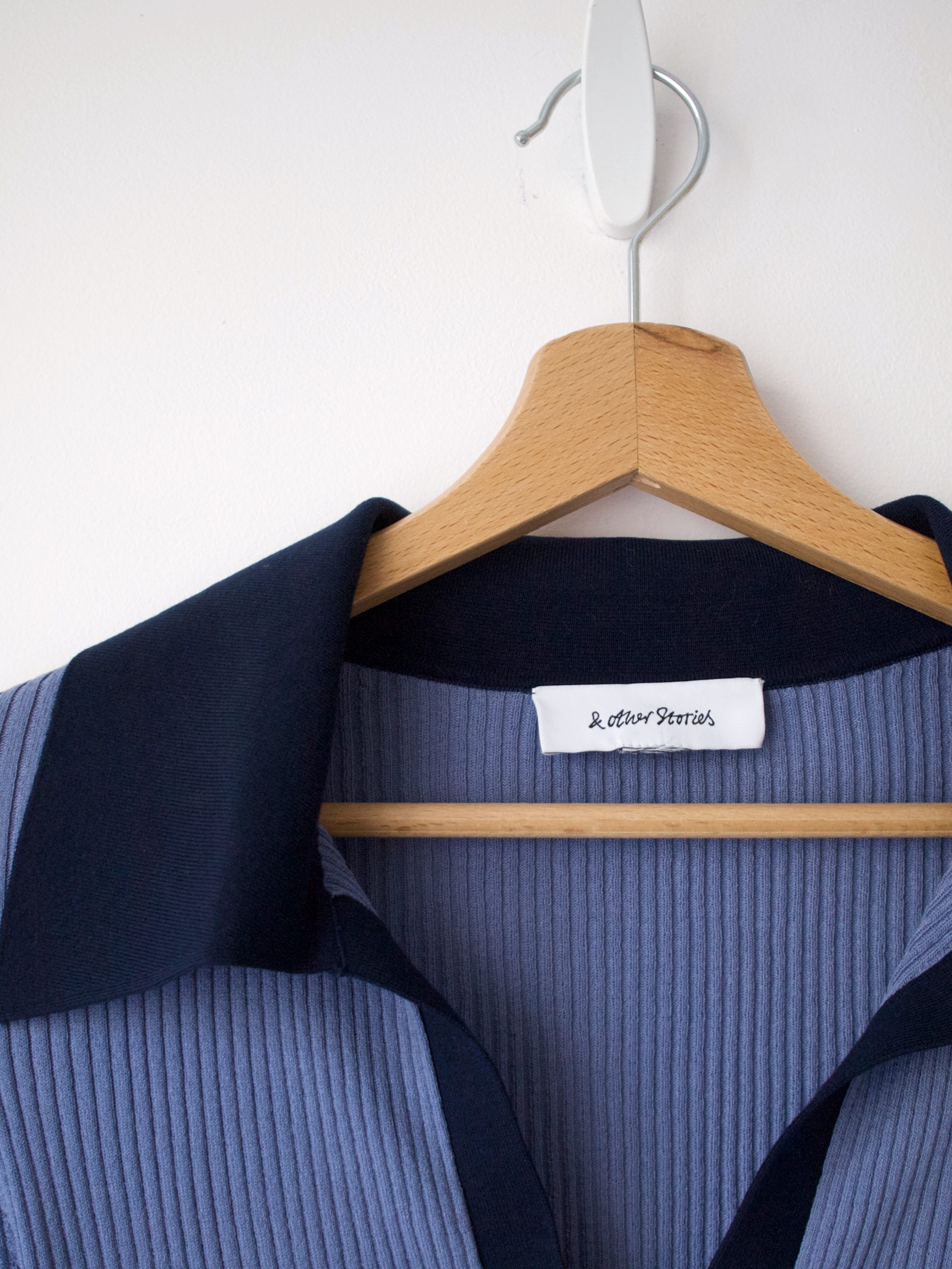 Inspirowany latami 70. XX wieku top polo z dżerseju w prążki. Dopasowany fason z otwartym kołnierzykiem.
