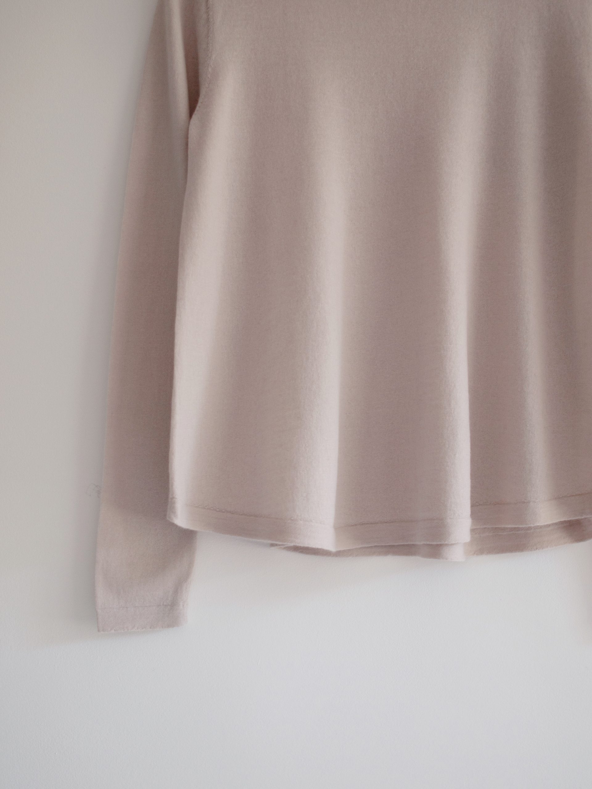 Cienki wełniany sweter w kolorze pudrowego różu. Ekskluzywna szwajcarska marka Paul Kehl. Rozmiar z metki: M Skład: 100% wełna Stan: bez wad Szerokość w klatce 48 cm Długośćcałkowita 55 cm