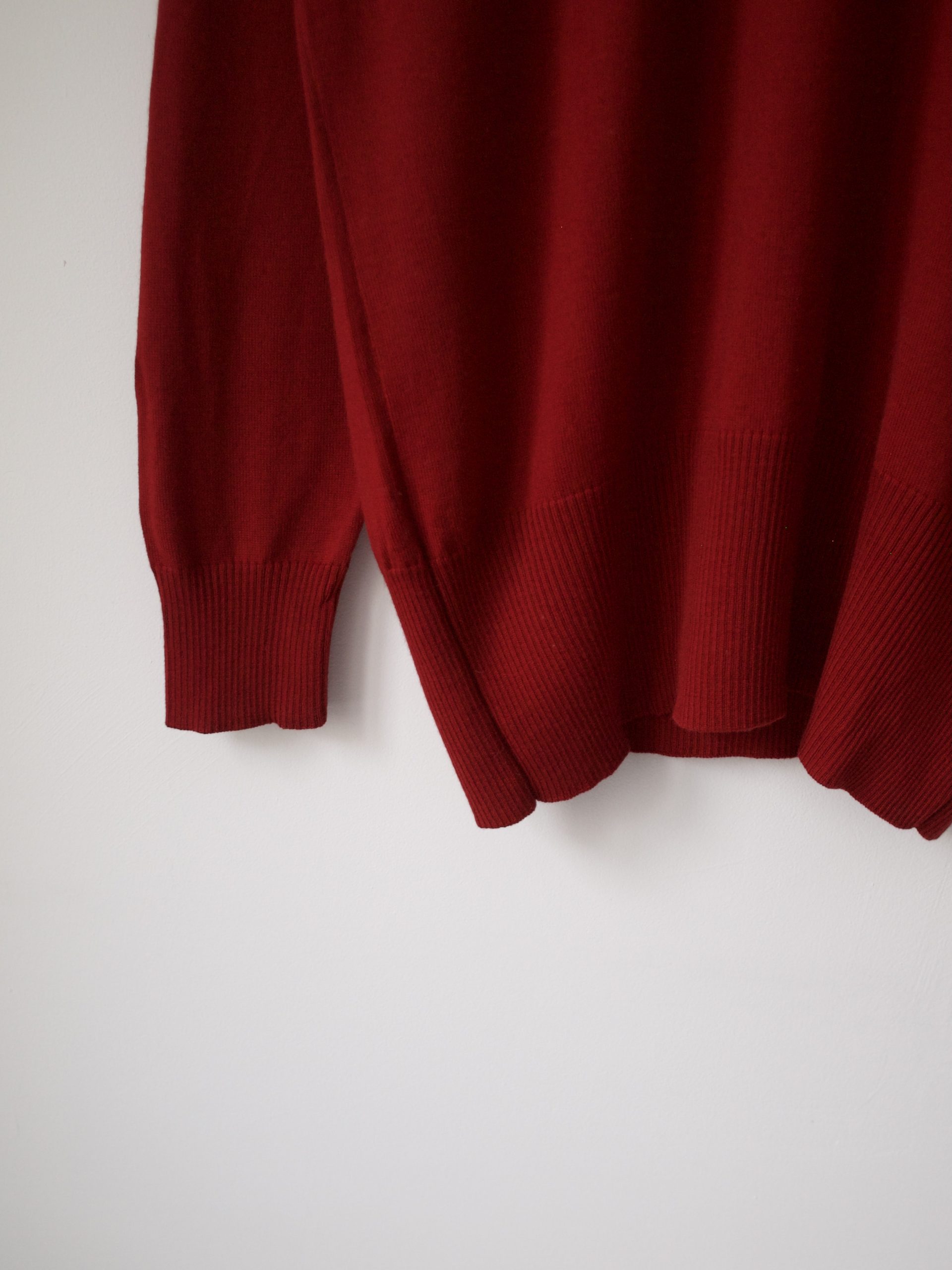 Minimalistyczny kaszmirowy sweter o pudełkowym kroju. Sweter bardzo miękki i przyjemny, ma dwie małe zacerowane dziurki, nie widoczne w noszeniu, poza tym brak mankamentów. Wymiary poniżej.
