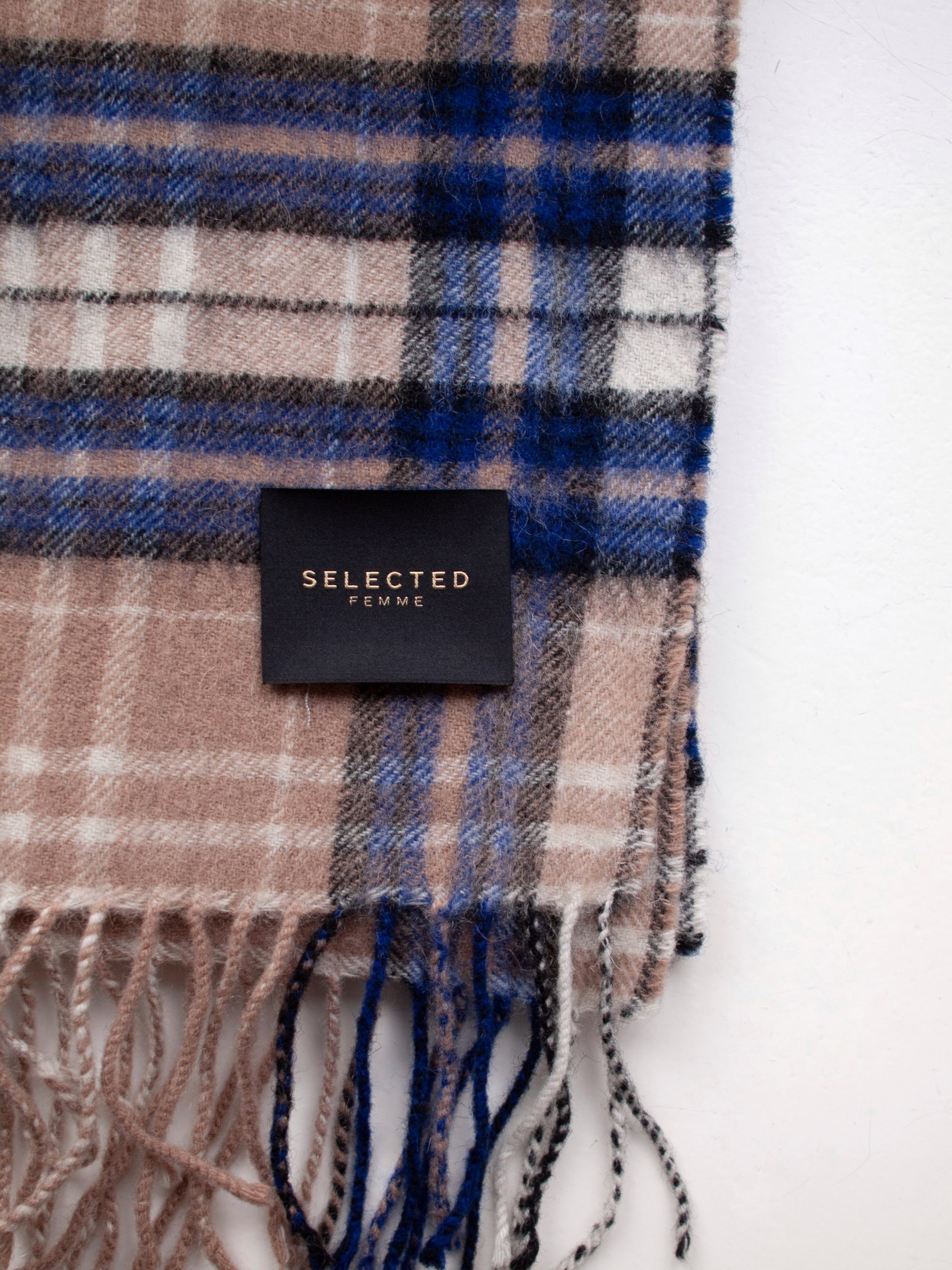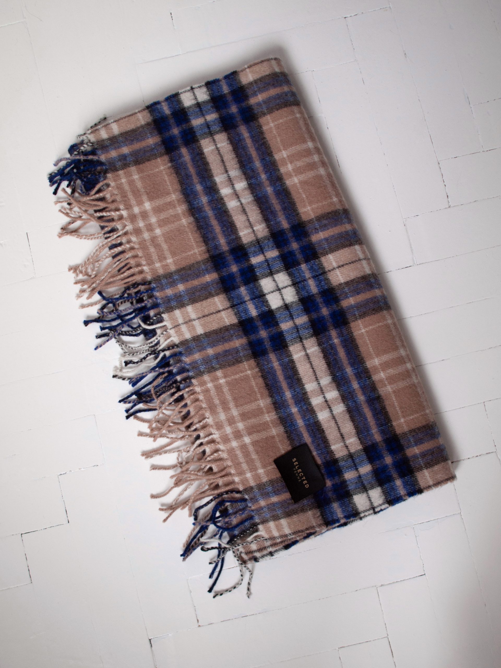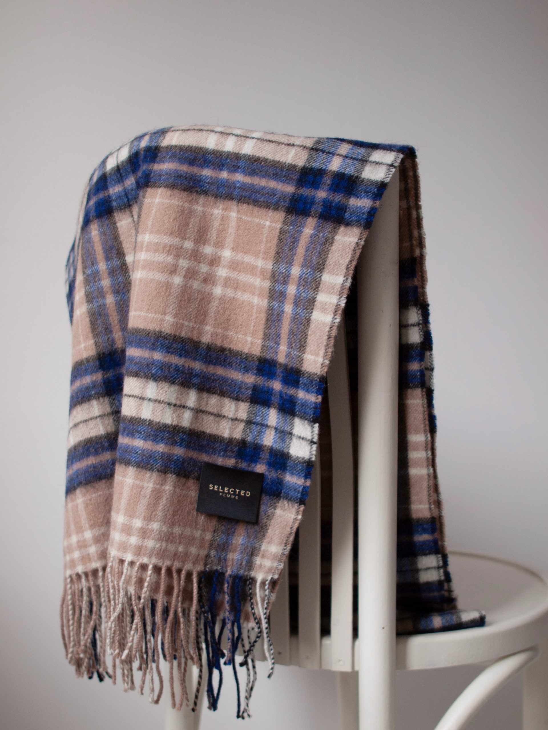 Bardzo duży wełniany szalik w kratę. Skandynawska marka Selected.