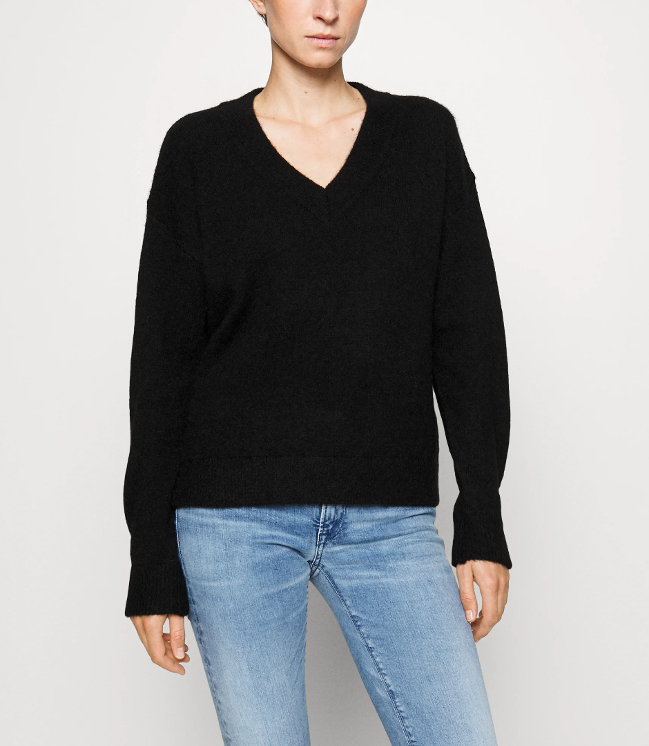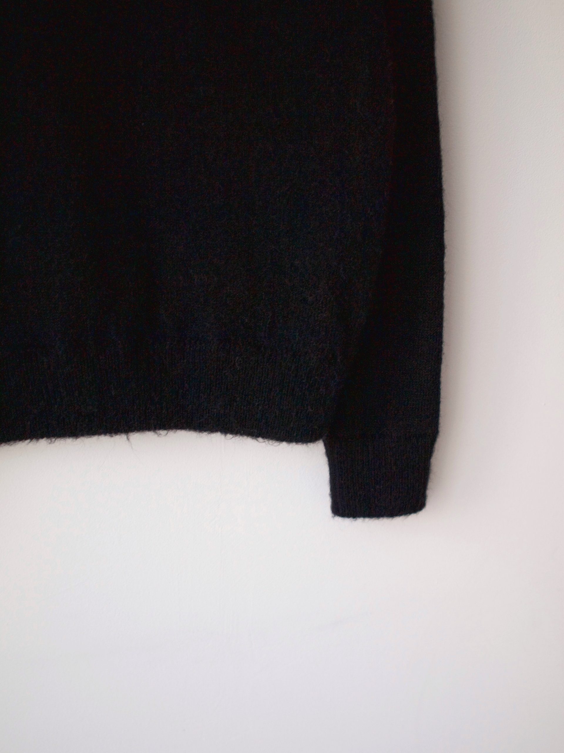 Klasyczny sweter M&S z dekoltem w serek. Skład to 100% kaszmir, bardzo dobry stan, jest minimalnie sfilcowany, nie jest to zauważalne, po prostu jest trochę sztywniejszy.