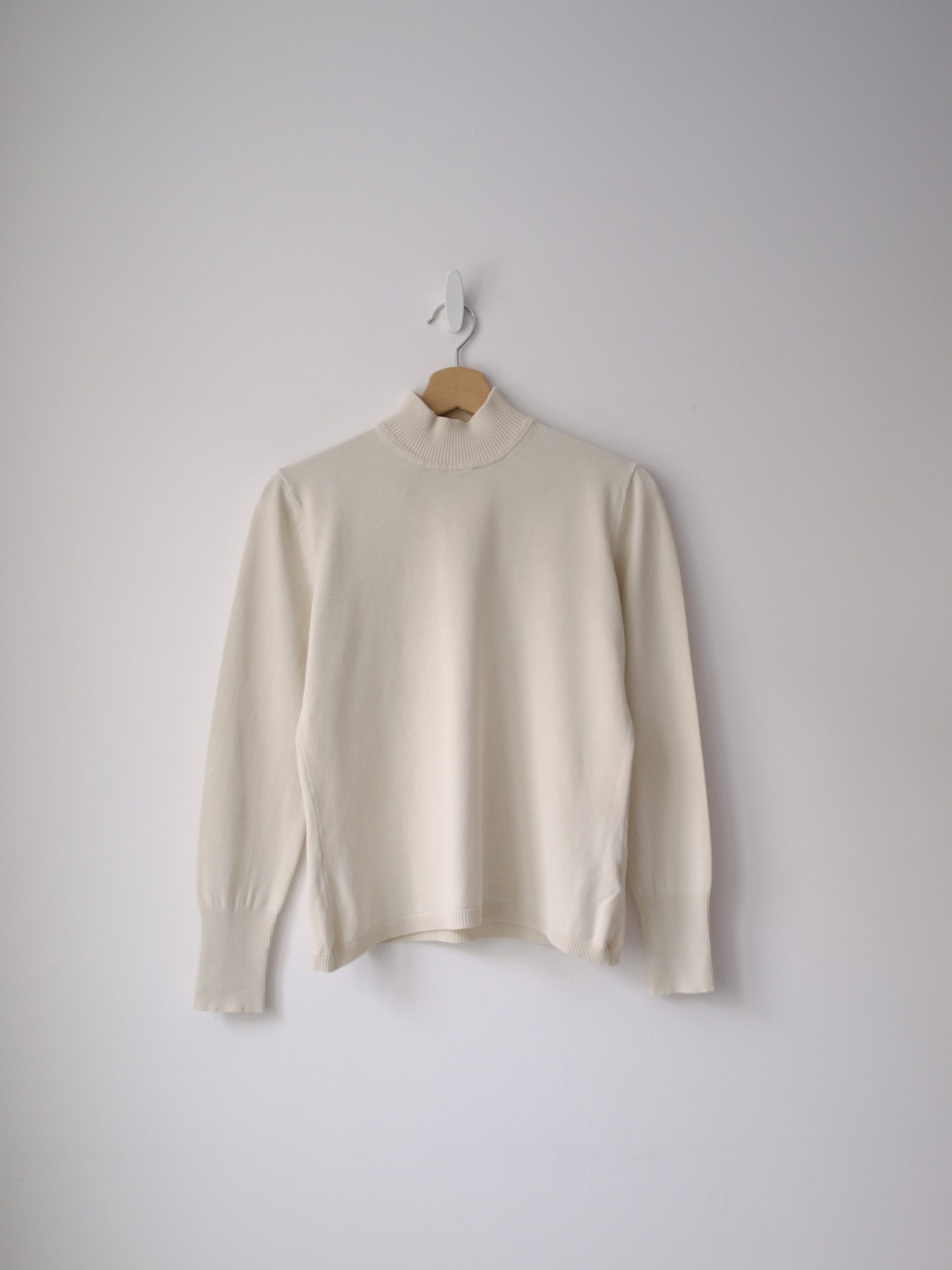 Jedwabny golf vintage, idealny jako pierwsza warstwa. Rozmiar z metki: 40 Skład: 80% jedwab, 20% poliamid Stan: bez wad Szerokość w klatce 46 cm Długośćcałkowita 54 cm