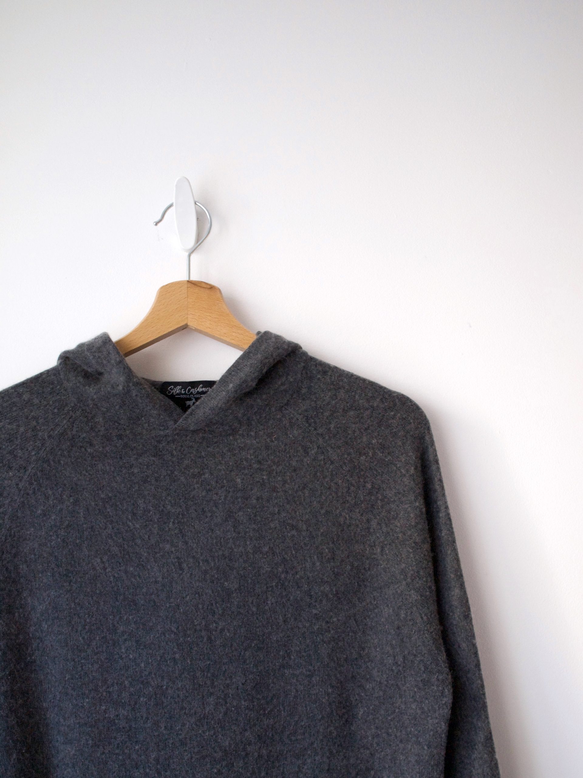 Dzianinowa bluza z kapturem, wykonana z puszystej i bardzo przyjemnej w dotyku mieszanki jedwabiu i kaszmiru.