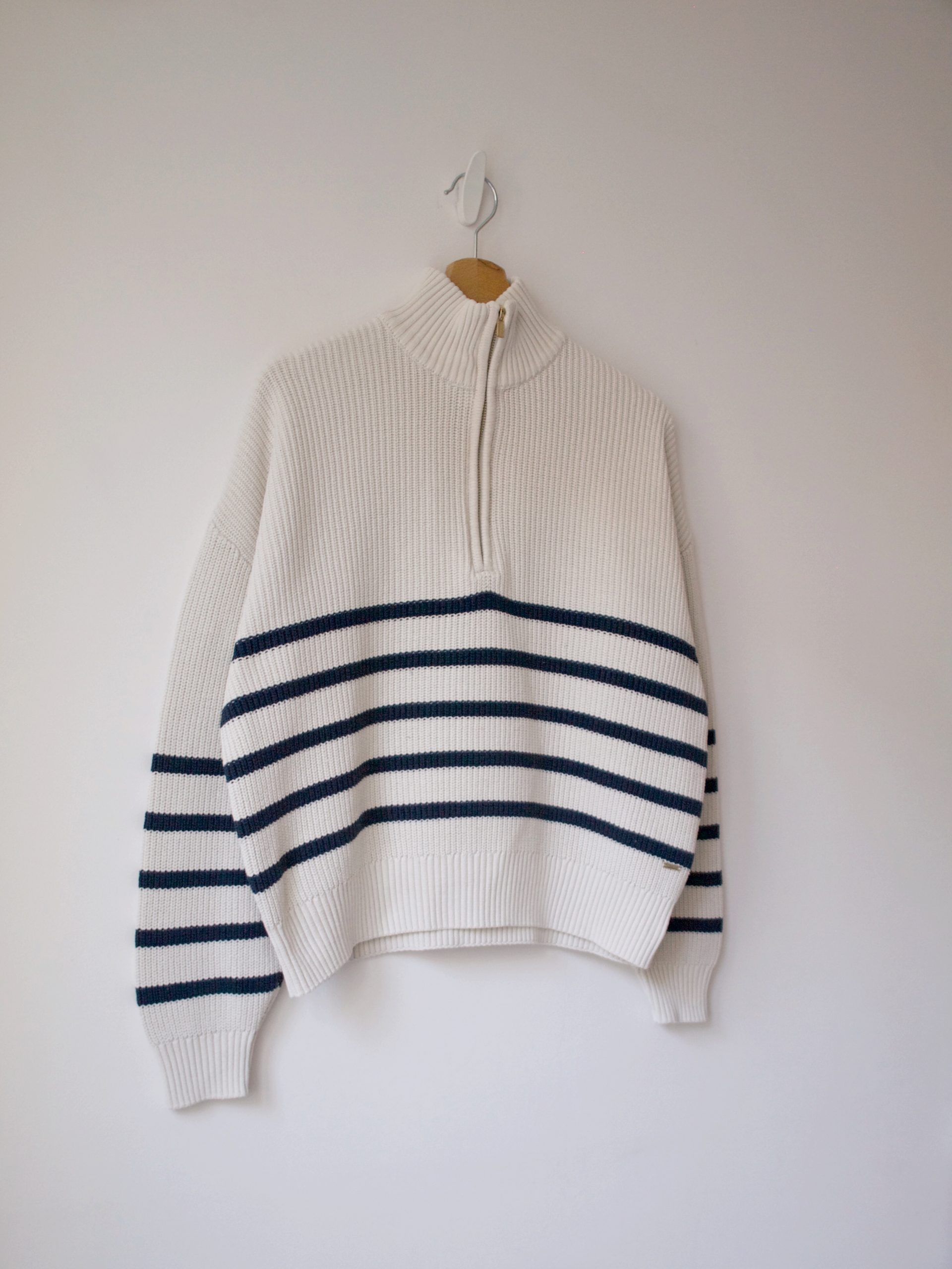 Sweter skandynawskiej marki Lindex. Rozmiar z metki: S, luźny Skład: 80% bawełna, 20% poliamid Stan: bez wad Szerokość w klatce 58 cm Długośćcałkowita 55 cm