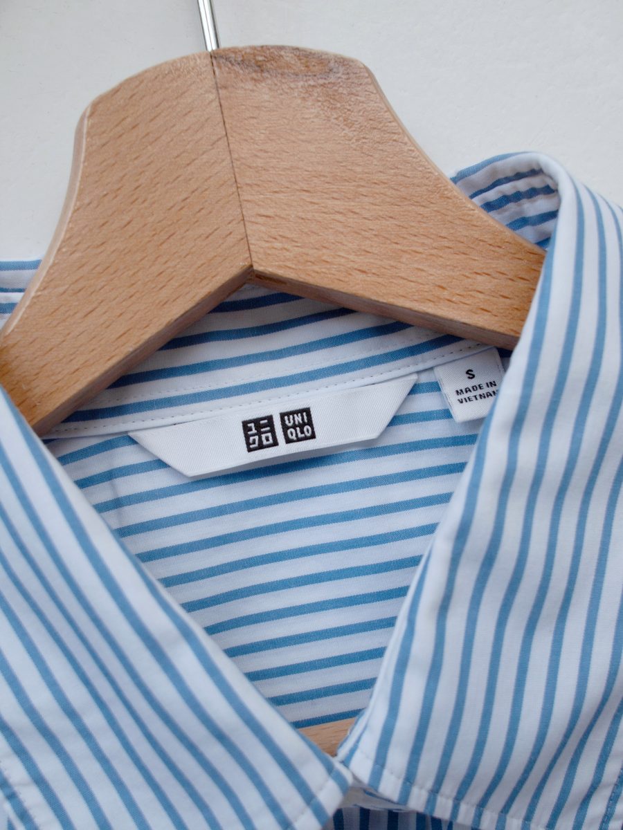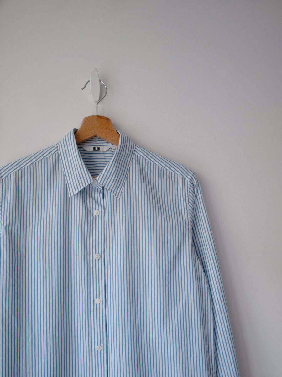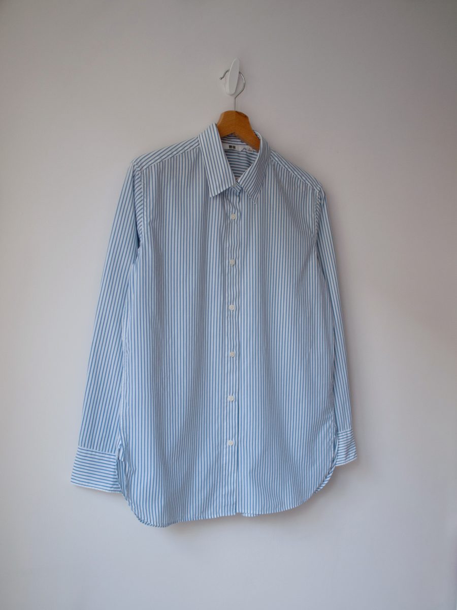 Koszula marki Uniqlo w stylu basic. Rozmiar z metki: S, luźny Skład: 100% bawełna Stan: idealny Szerokość w klatce 52 cm Długość całkowita 70 cm
