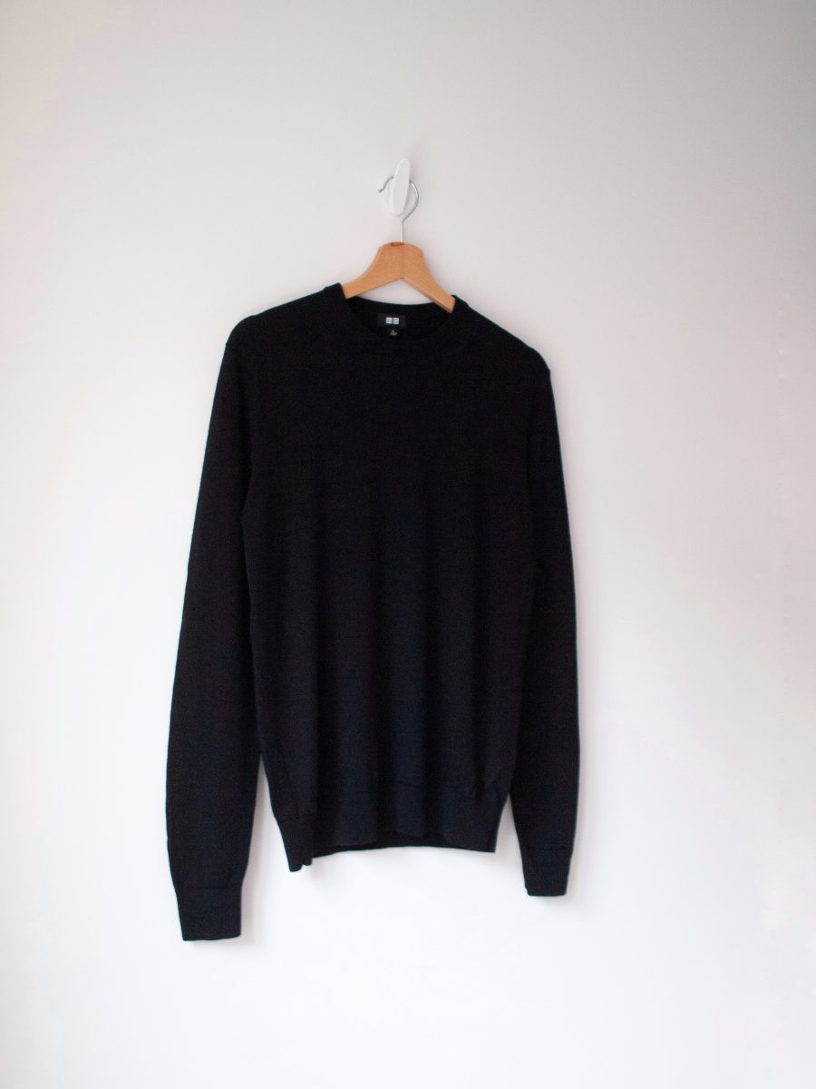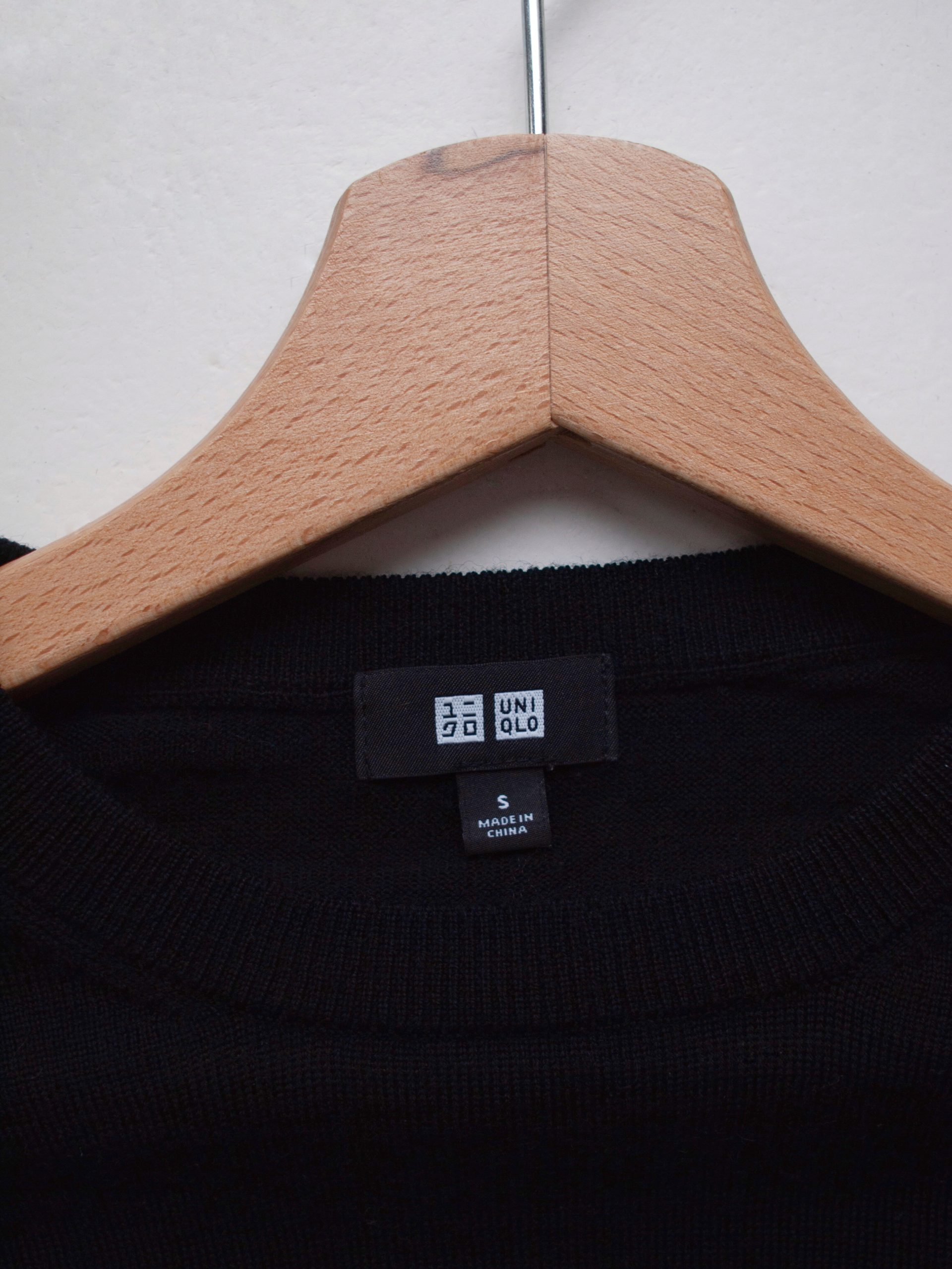 Basicowy sweter marki Uniqlo, w 100% wykonany z gładkiej, niegryzącej wełny. Model męski. Rozmiar z metki: S Skład: wełna Stan: bez wad Szerokość w klatce 48 cm Długośćcałkowita 64 cm