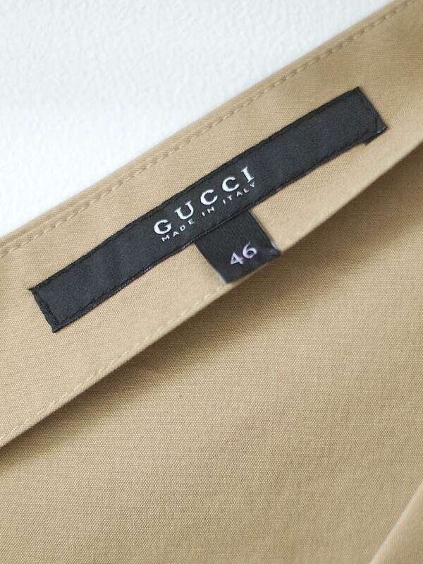 Wiązana sukienka z bardzo długim paskiem. Odkryte ramiona, dwie kieszenie, z tyłu zapinana na zamek. Włoski dom mody Gucci, wyprodukowana we Włoszech. Rozmiar z metki 46, wymiary poniżej. Idealny stan. Sukienka także wystawiona na sprzedaż w serwisie Vestiaire, gdzie wstępnie była sprawdzana na autentyczność.