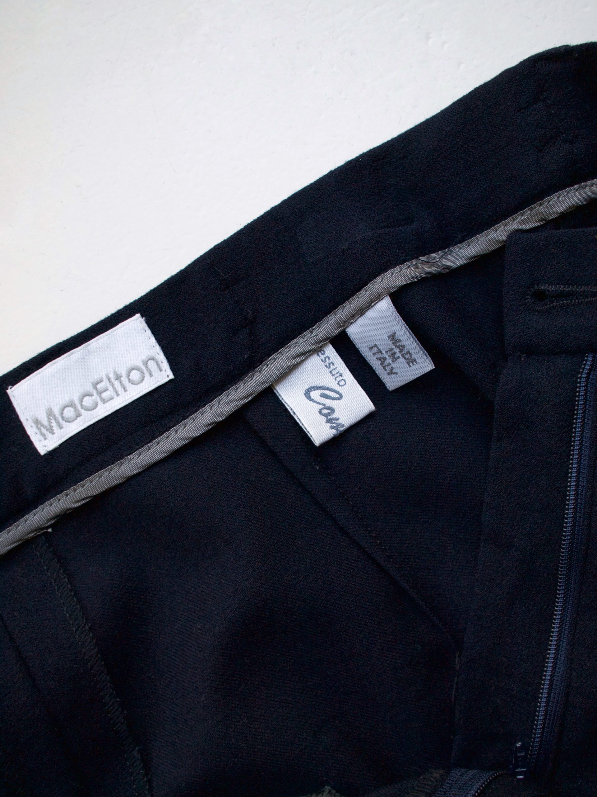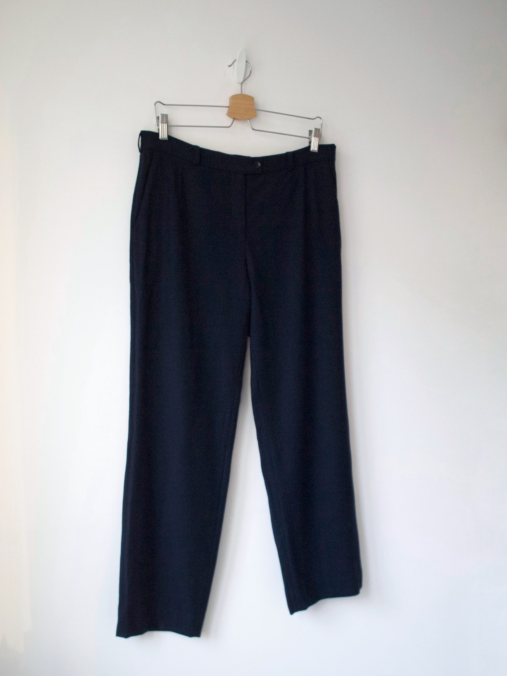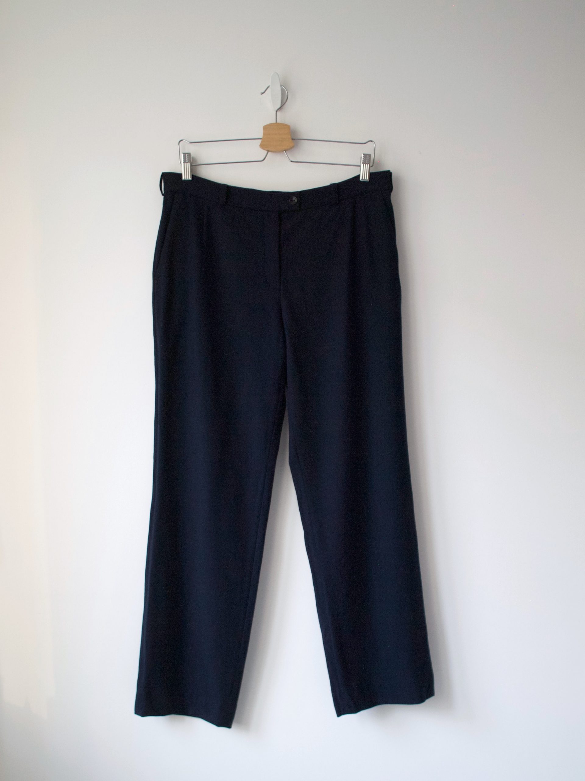 Spodnie vintage wykonane z wełnianej flaneli, wyprodukowane we Włoszech. Kolor: głęboki granat.