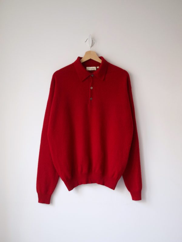 150,00 złKaszmirowy sweter marki Christian Berg, znanej z produkcji jakościowych ubrań. Sweter posiada kołnierz typu polo, a dół oraz rękawy są wykończone ściągaczami. Z tyłu, na ściągaczu, znajduje się cerowanie, które jest praktycznie niewidoczne; poza tym sweter jest bez wad.