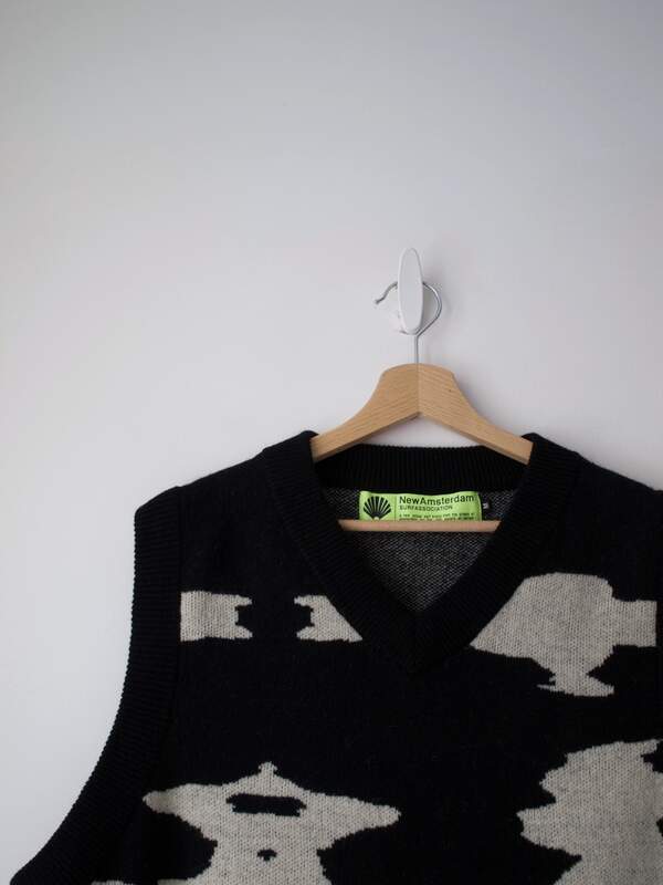 Bezrękawnik niderlandzkiej marki New Amsterdam Surf Association. Bardzo luźny fason. Rozmiar z metki: M, bardzo luźny Skład: 80% wełna, 20% poliamid Stan: idealny Szerokość w klatce 56 cm Długośćcałkowita 67 cm