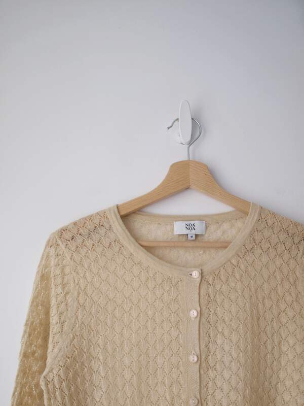 Cienki ażurowy sweter duńskiej marki Noa Noa. Rozmiar z metki: M, polecam również na XS-S Skład: 83% len 17% poliamid Stan: bez wad Szerokość w klatce 43 cm Długośćcałkowita 53 cm