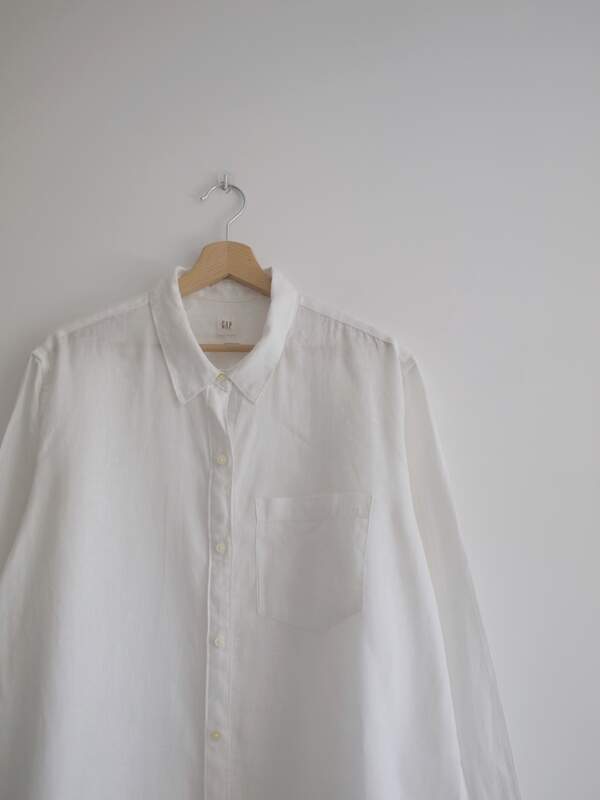 Koszula marki Gap w 100% wykonana z lnu. Model Boyfriend o luźnym fasonie. Rozmiar z metki: XL, luźny Skład: 100% len Stan: bez wad Szerokość w klatce 63 cm Długośćcałkowita 81 cm