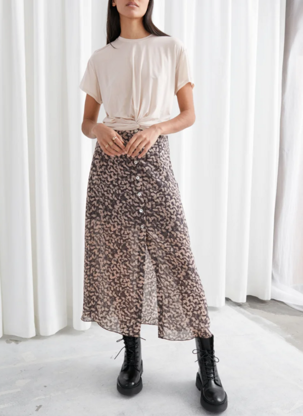 Spódnica skandynawskiej marki Other Stories. Zapinana na guziki z naturalnej muszli.