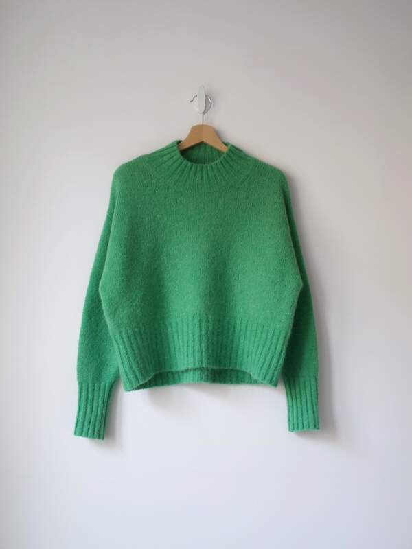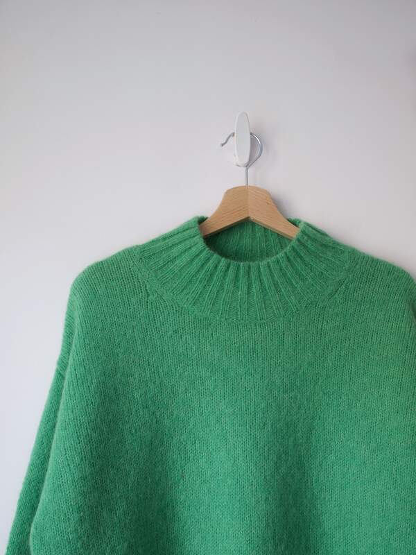 Puszysty sweter marki COS o pudełkowym fasonie. Rozmiar z metki: S, luźny Skład: na zdjęciu Stan: idealny Szerokość w klatce 55 cm Długośćcałkowita 52 cm