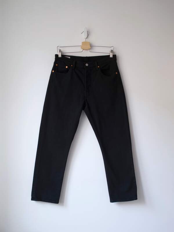 Jeansy marki Levi’s, kultowy model 501. Zapinany na metalowe guziki. Rozmiar z metki: w29 l26 Skład: 97% bawełna, 2% poliester 1% elastan Stan: bez wad Szerokość w pasie 38,5 cm Szerokość w biodrach 51 cm Długość całkowita 91 cm