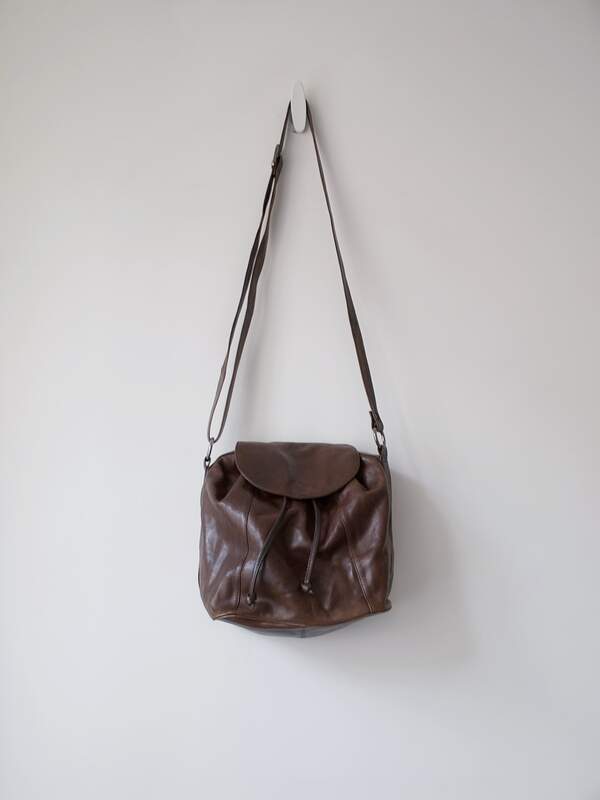 Torebka o kroju worka, wykonana z naturalnej skóry w kolorze brązowym. W środku jedna komora oraz zapinana na zamek kieszeń. Bez wad.