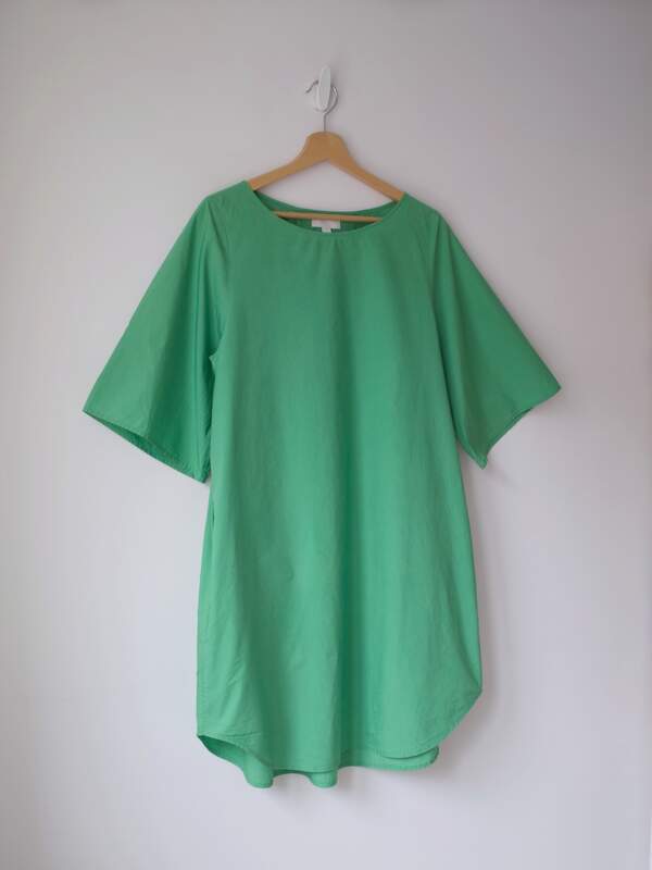 Sukienka marki COS, w 100% wykonana z bawełnianej popeliny. Z kieszeniami, bez podszewki. Rozmiar z metki: 40 Skład: 100% bawełna Stan: bez wad Szerokość w klatce 52 cm Długośćcałkowita 94 cm