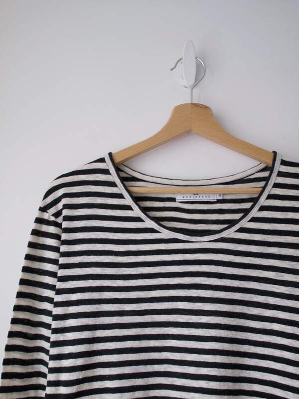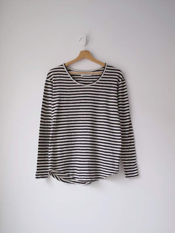 Longsleeve luksusowej norweskiej marki Arnie Says. Rozmiar z metki: S Skład: 70% bawełna, 30% len Stan: bez wad Szerokość w klatce 45 cm Długośćcałkowita 70 cm