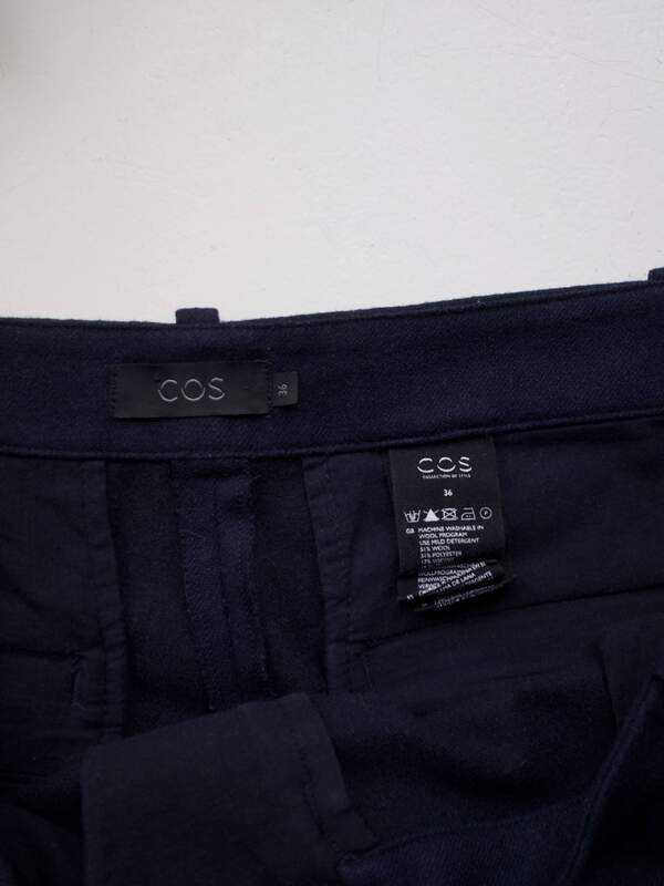 150,00 złGranatowe spodnie marki COS. Wykonane z tkaniny z dużym dodatkiem wełny. UWAGA, na metce rozmiar 36, w rzeczywistości pasują na znacznie większy, proszę sprawdzić wymiary.